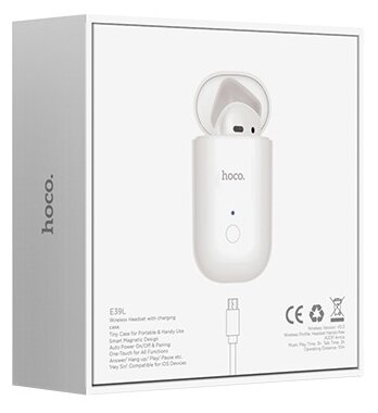 Беспроводная Bluetooth-гарнитура для мобильного телефона HOCO E39L (в левое ухо), белая
