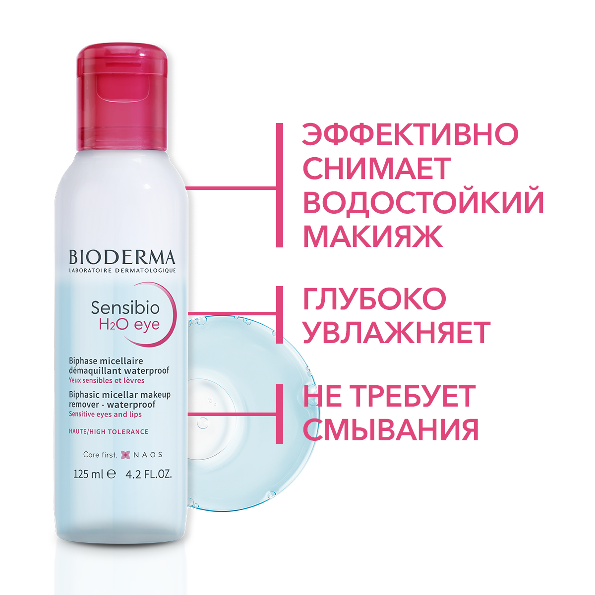 Купить BIODERMA Sensibio H2O Двухфазное мицеллярное средство для очищения чувствительной зоны глаз и губ, 125 мл