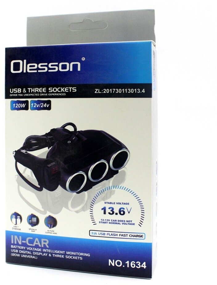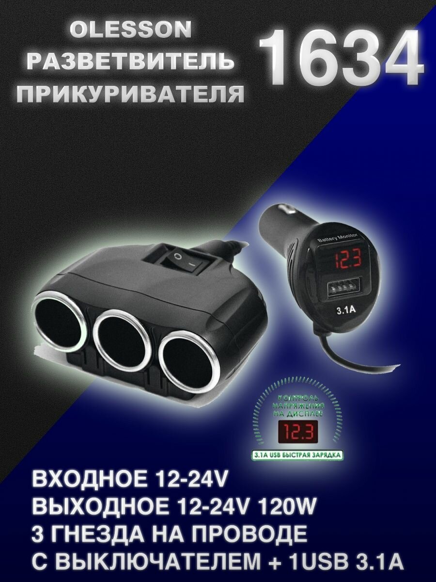 Разветвитель прикуривателя Olesson 1634 интересное: