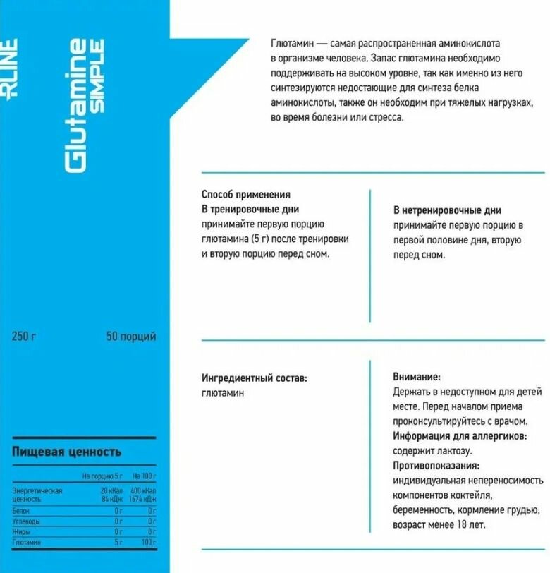 Глютамин RLINE Nutrition Glutamine Simple, без вкуса, 250 гр интересное:
