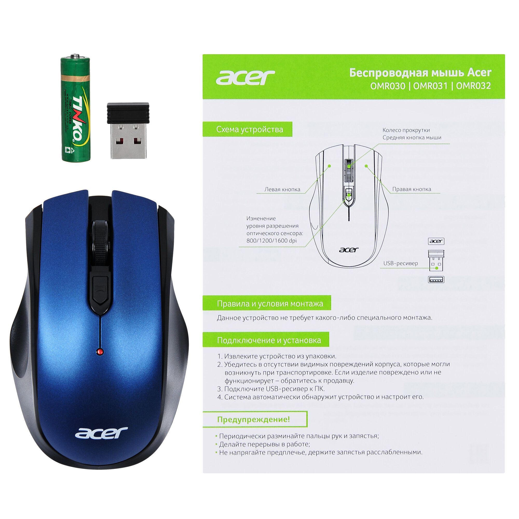 | Отзыв: | В комплекте указано наличие ресивера, при вскрытии обнаружили только батарейку и мышь. |