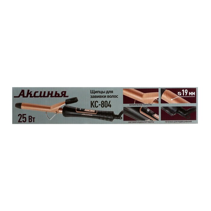 Плойка Аксинья КС-804, 35 Вт, керамическое покрытие, d=19 мм, шнур 1.8 м, чёрно-бежевая