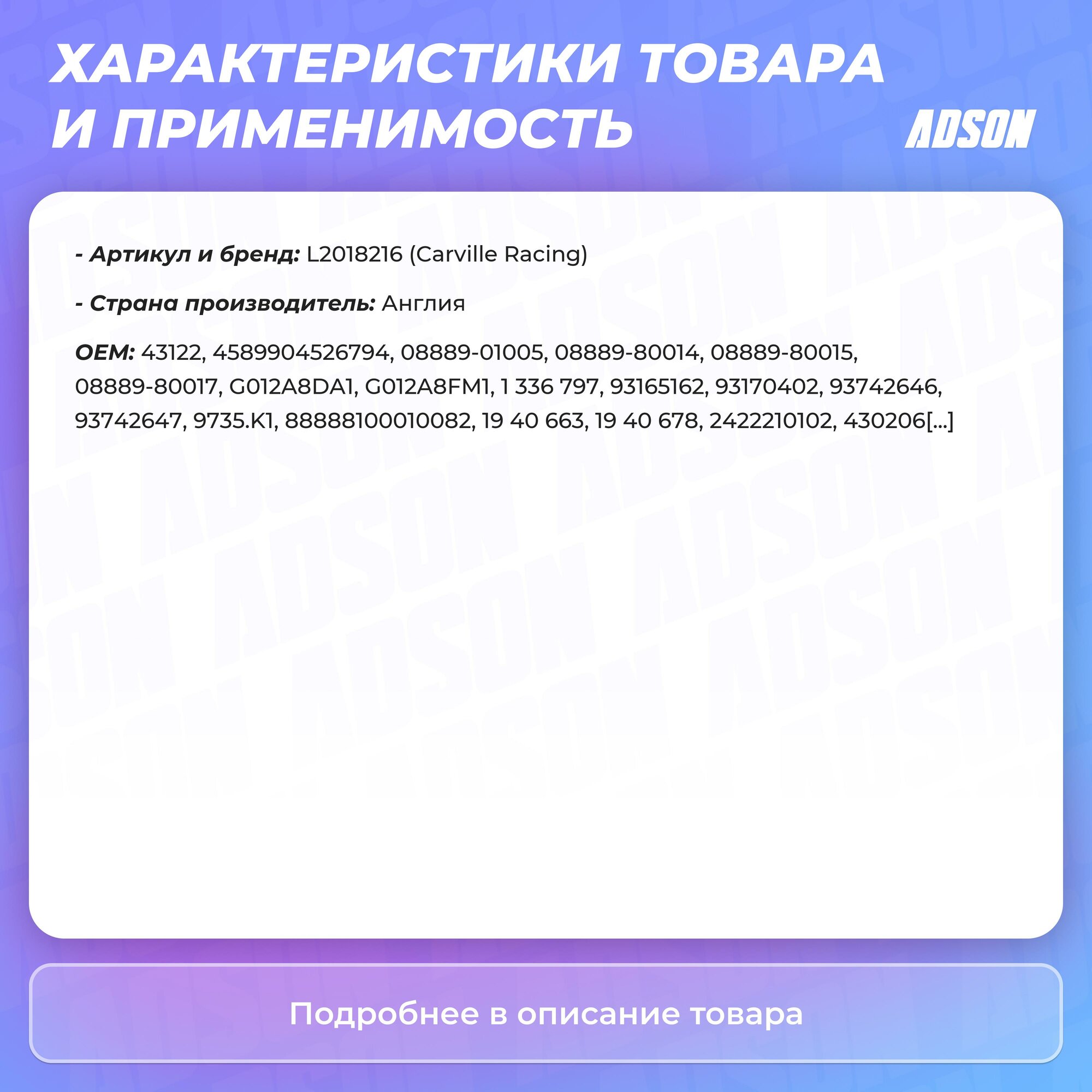 Рђрѕс‚Рёс„Сђрёр· Cr G12+ Oat -40°у, Рєсђр°Сѓрѕс‹Р№, Рірѕс‚Рѕріс‹Р№, 5Рєрі/4.67Р» (L2022756) Carville Racing арт. L2022756