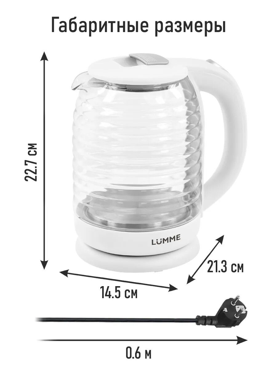 Электрический чайник LUMME LU-4102 белый жемчуг стеклянный с подсветкой 2 л