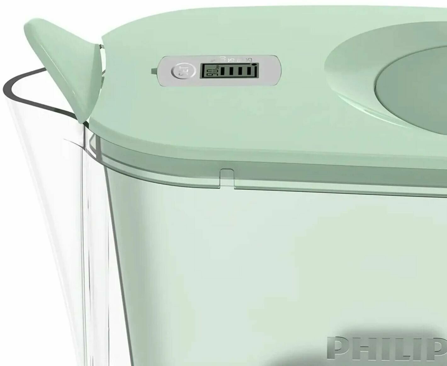 Кувшин для воды Philips AWP2938GNT/51 4 л, с фильтром для очистки воды, с откидной крышкой и цифровым таймером, скорость фильтрации 0,3 л/мин, носик с защитой от пыли