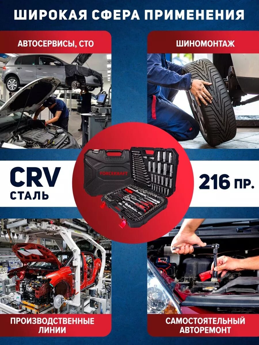 Набор инструментов 216 предметов FORCEKRAFT 1/4''3/8''1/2''(6гр.)(4-32мм)