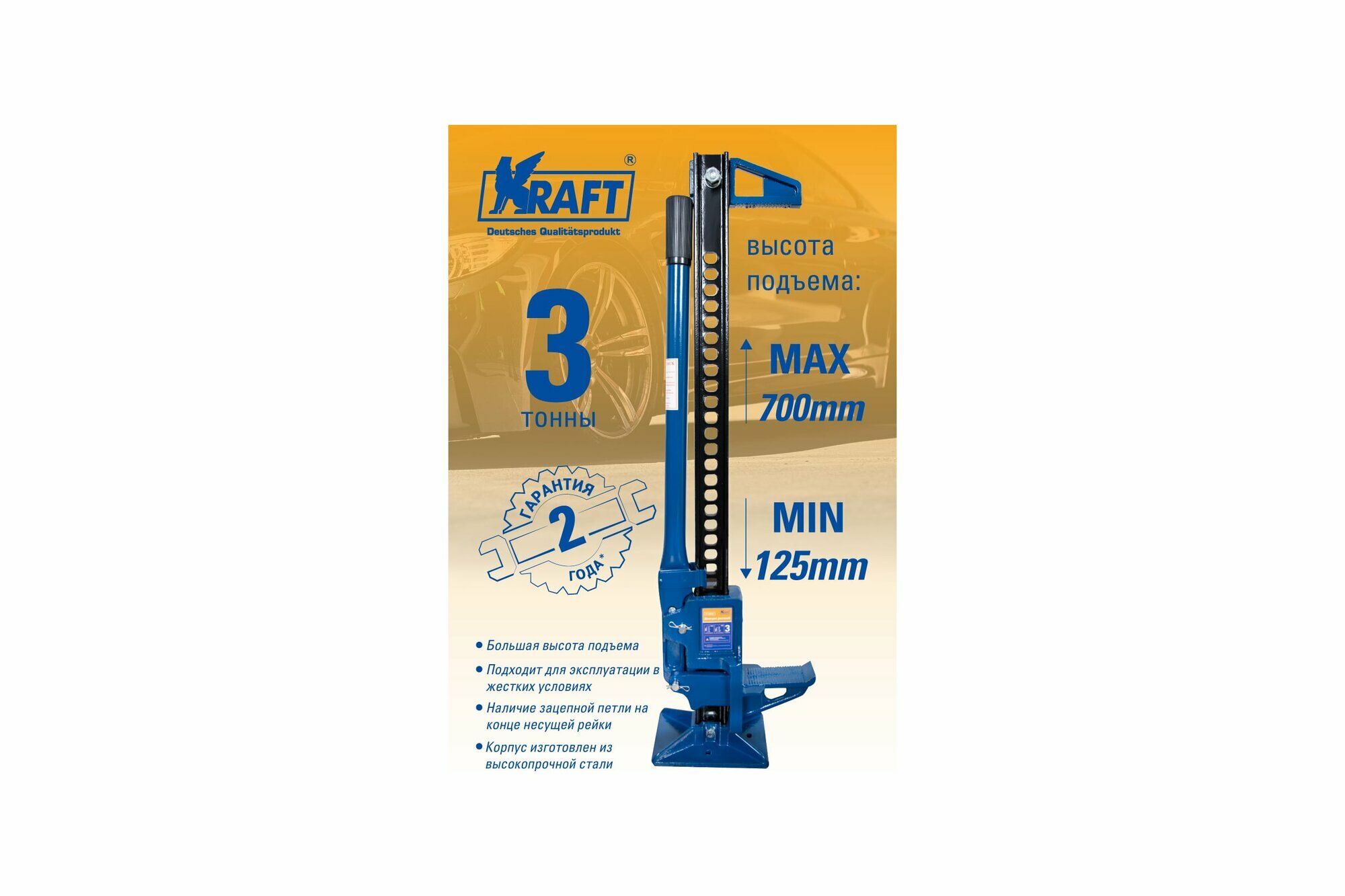 KRAFT KT 800092 Домкрат реечный 3Т 125-700 мм