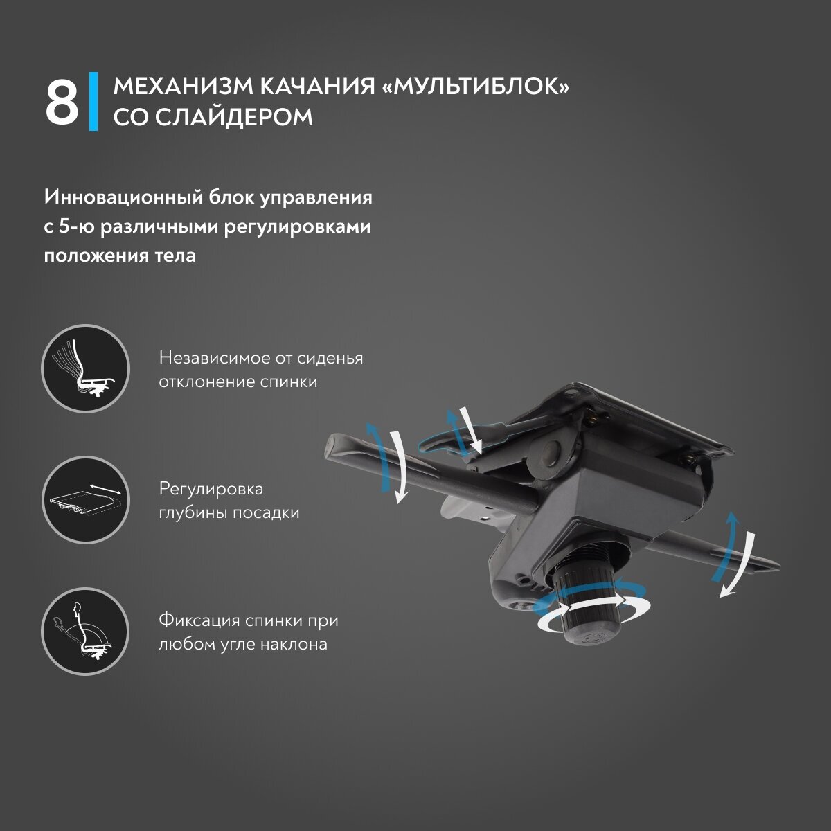 2) Подлокотники - массивные, широкие, приятное тактильное ощущение. 3) Удобная регулировка различных компонентов |