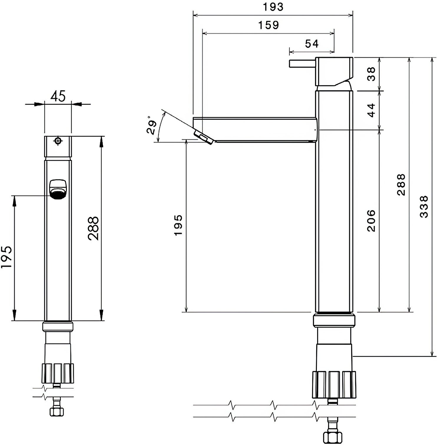 | Излив | длина 159 мм, высота 195 мм |