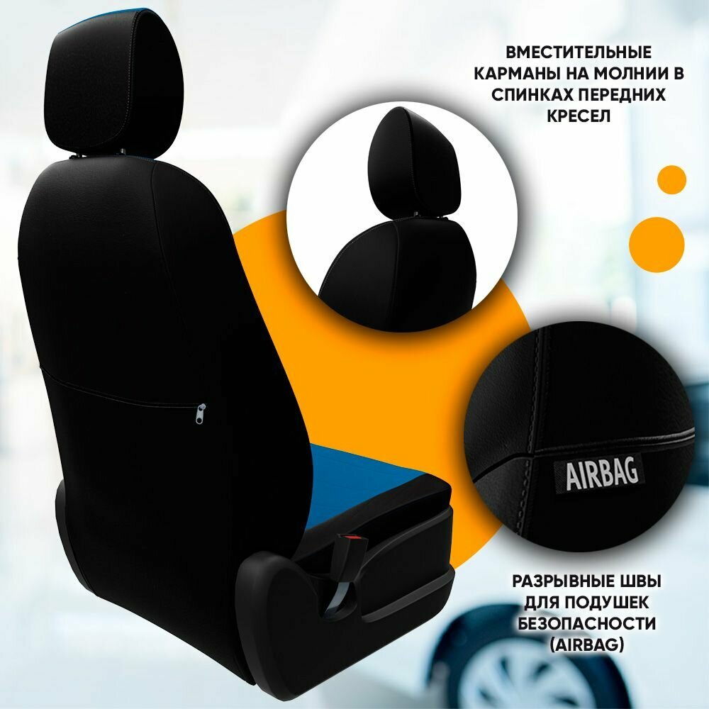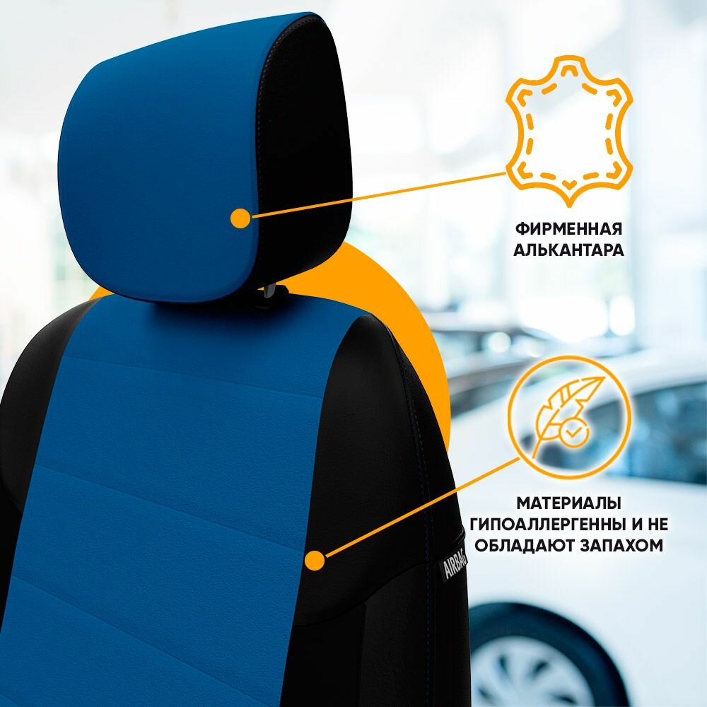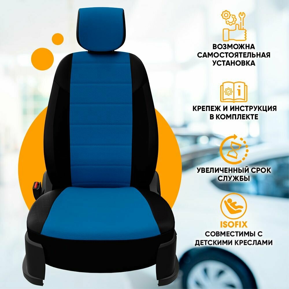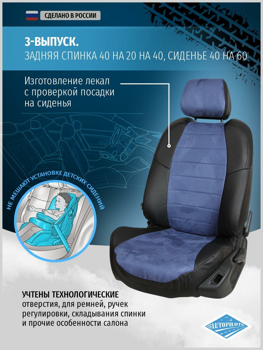 Комплект чехлов Автопилот Алькантара Chery Tiggo Т11 (50/50) с 05-13г. / Toyota Rav-4 (XA20) Черный + Синий интересное: