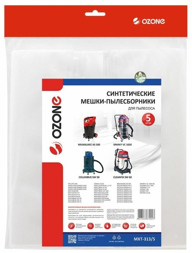 Мешки-пылесборники Ozone синтетические 5 шт для AFC, ANNOVI REVERBERI, BAIYUN и др.