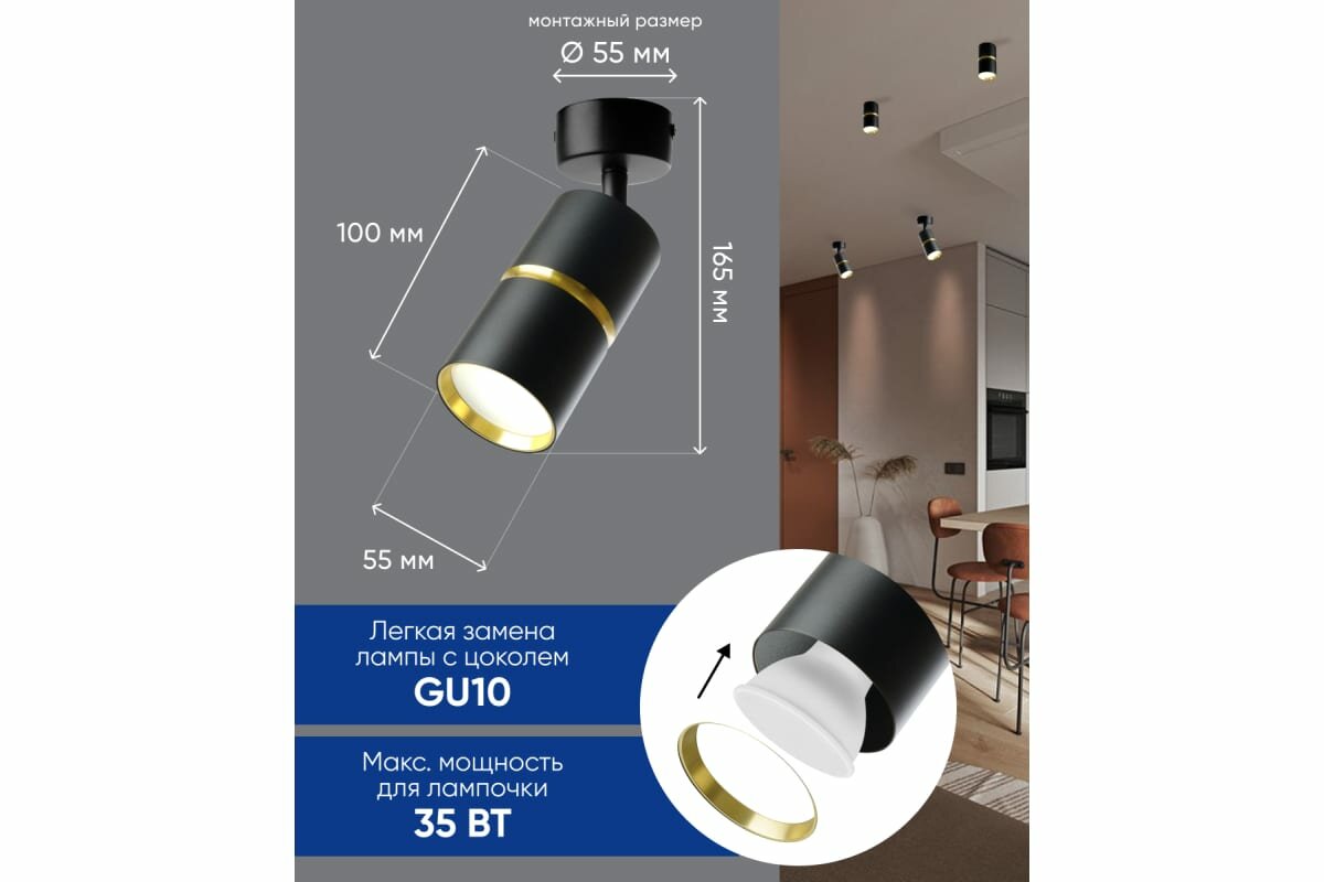 СохранитьСветильник ML1861 ZEN настенно-потолочный под лампу GU10, чёрный, золото интересное: