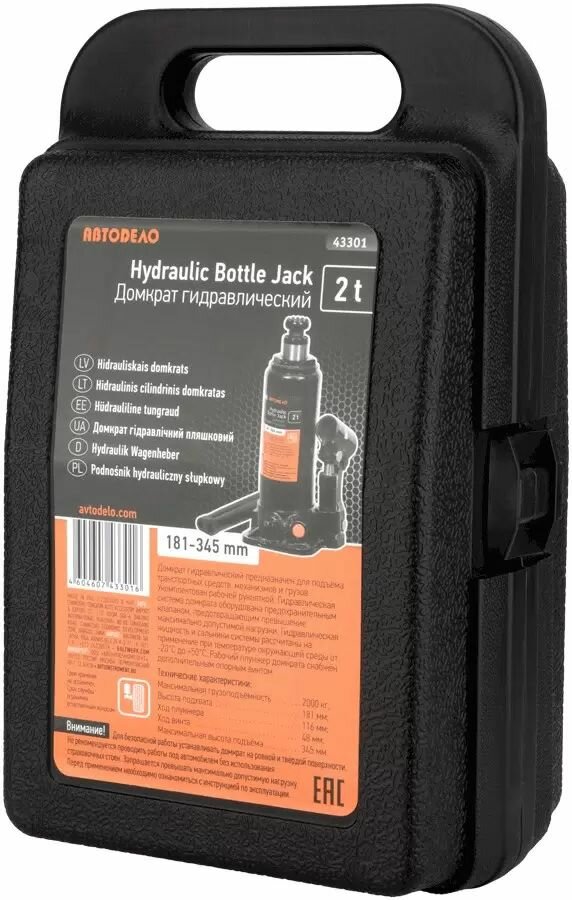 Домкрат бутылочный АвтоДело 43301 2 т 181-345 мм