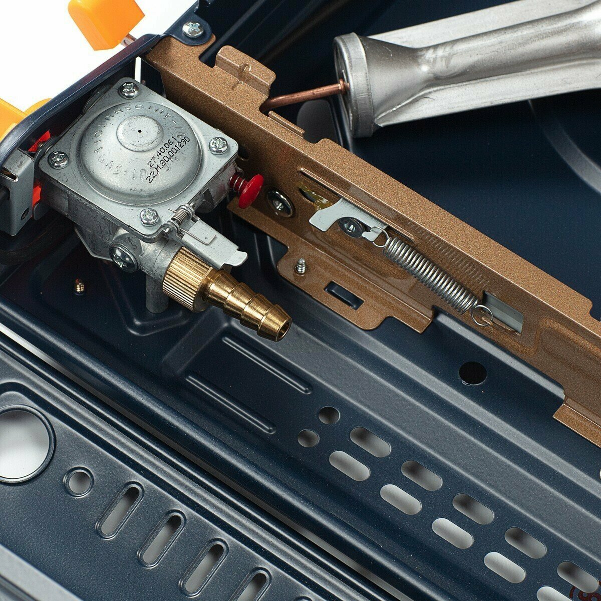 | Плюсы: | Отверстие для шланга в задней стенке, т. о. крышка отсека для 200г баллончика будет закрыта, но с хомутом шланг не проходит, но т. к. давление газа низкое шланг уверенно держится, а для собственного спокойствия, перекрываю вентиль на баллоне. Быстросъемный (резьба) штуцер для газового шланга, не требующий инструмента. Сняв штуцер можно установить 200г баллончик. Кейс. Защита от ветра работает. Пламя больше чем на бытовой плите. Нет колдовства со спичками или зажигалкой. |