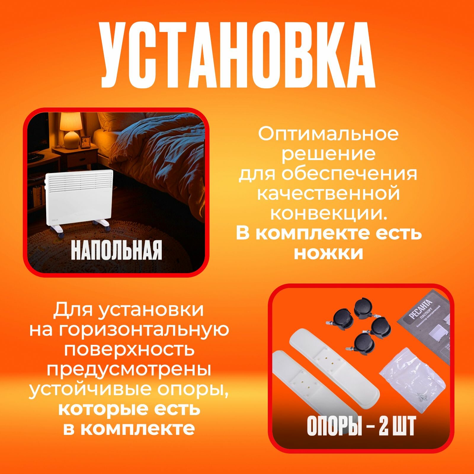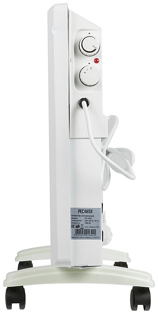 Конвектор РЕСАНТА ОК-1500, 1.5 кВт, 20 м², колеса в комплекте, белый
