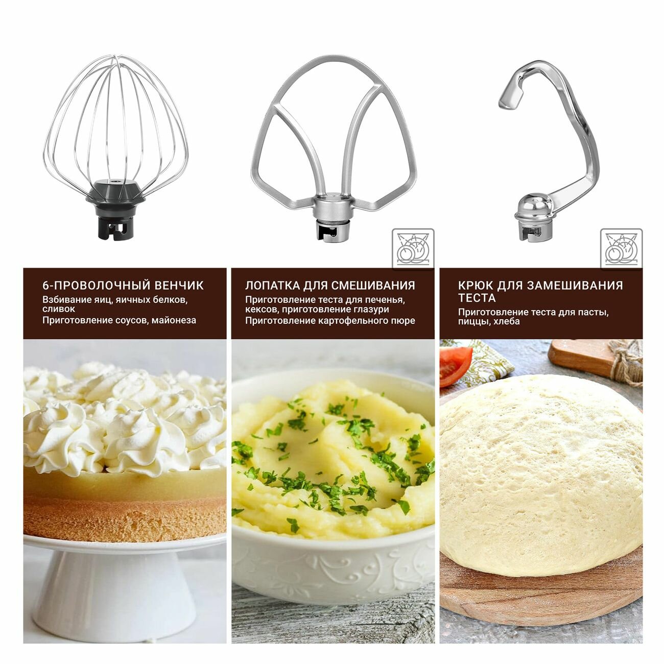 Планетарный миксер с 3-мя насадками, мощностью 1300Вт, объемом чаши 5,5л