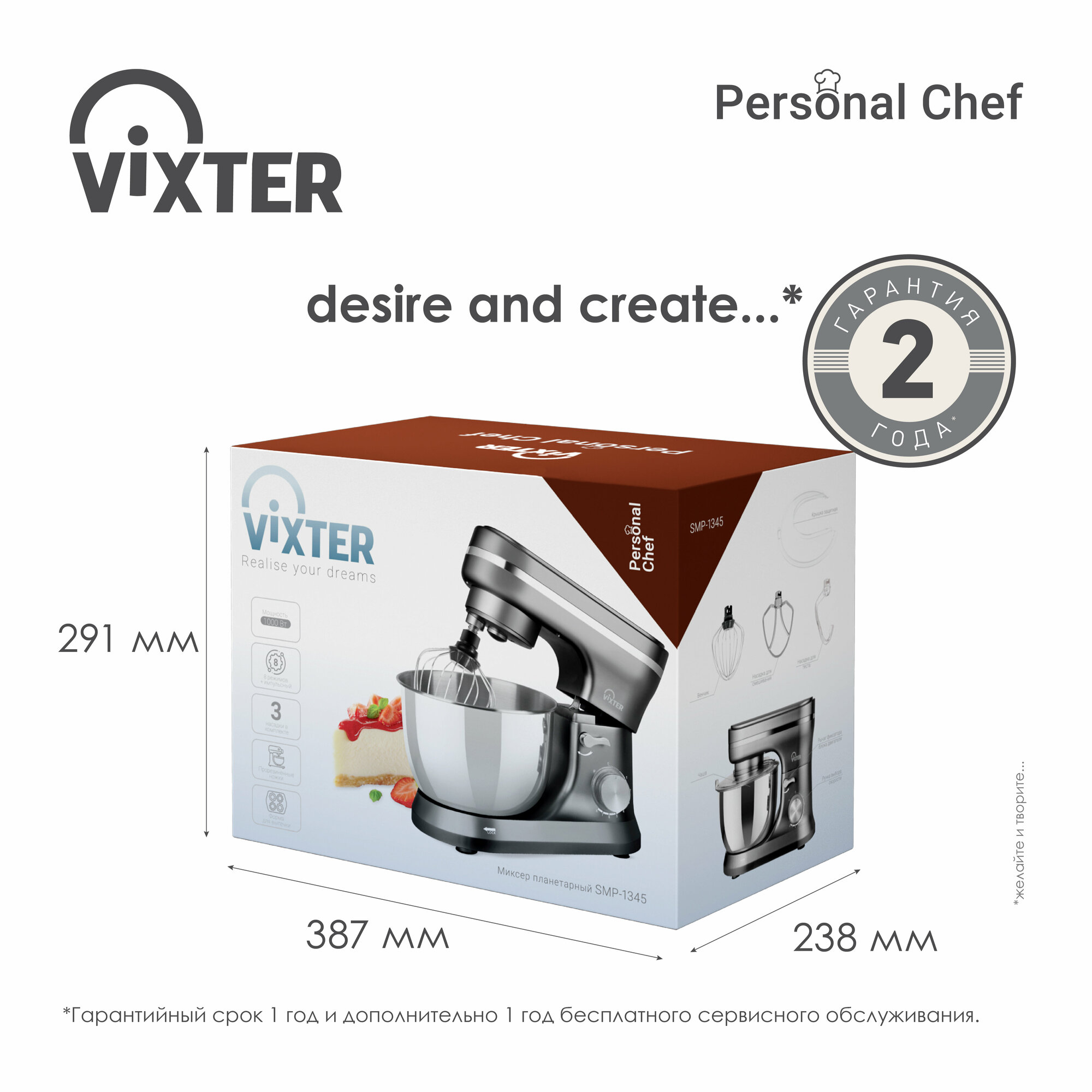 Купить Планетарный миксер Vixter, 1000Вт, серый/хром, с формой для выпечки