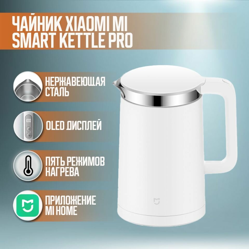 Чайник электрический Mi Smart Kettle Pro, пластик, колба металл, 1.5 л, 1800 Вт