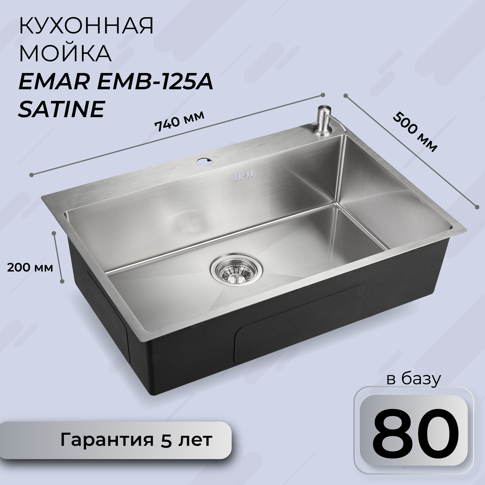 Emar EMB-130 PVD Nano Satine, мойка, нержавеющая сталь сатин