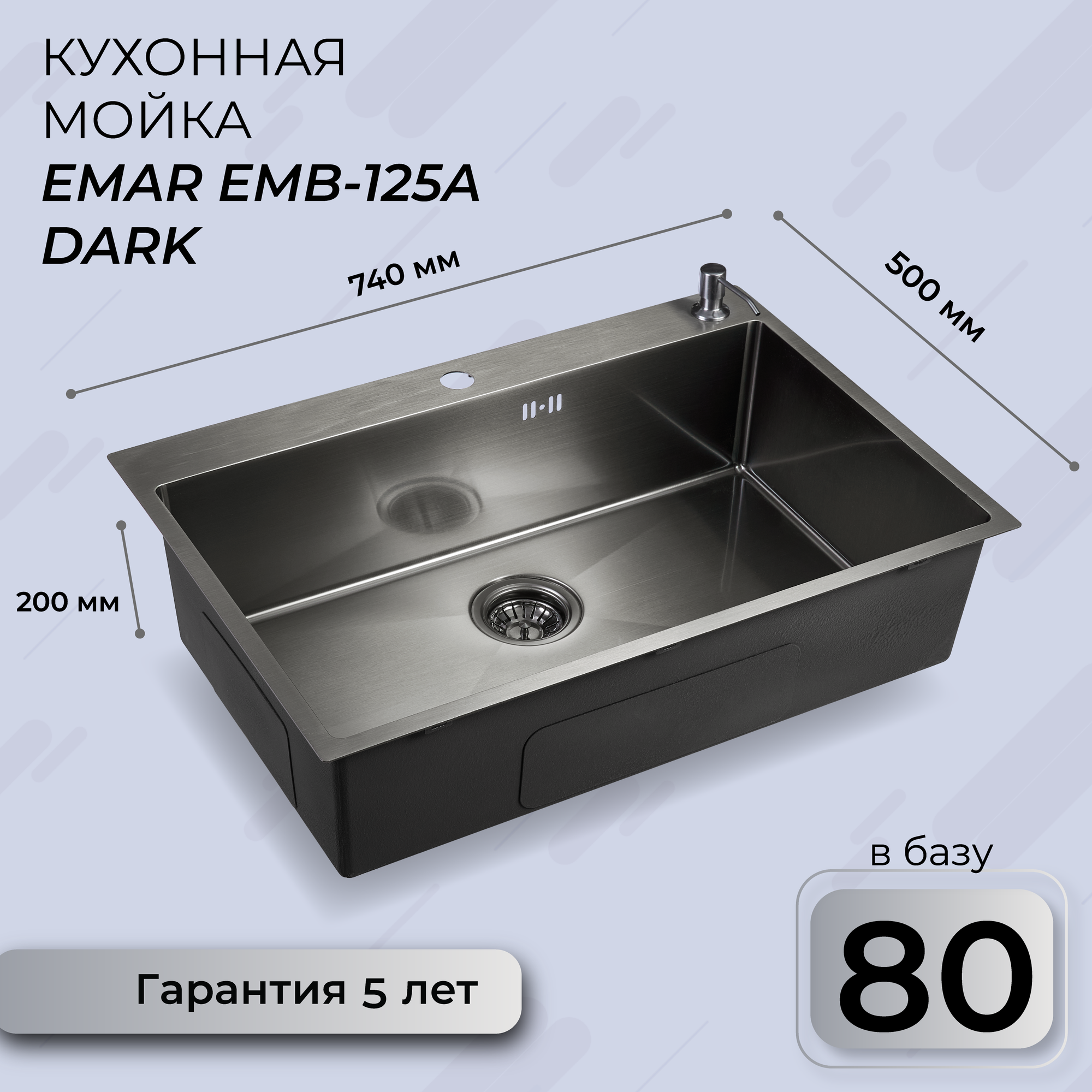 Мойка гранитная EMAR 800х500х200 мм EMQ-1800.Q Антрацит