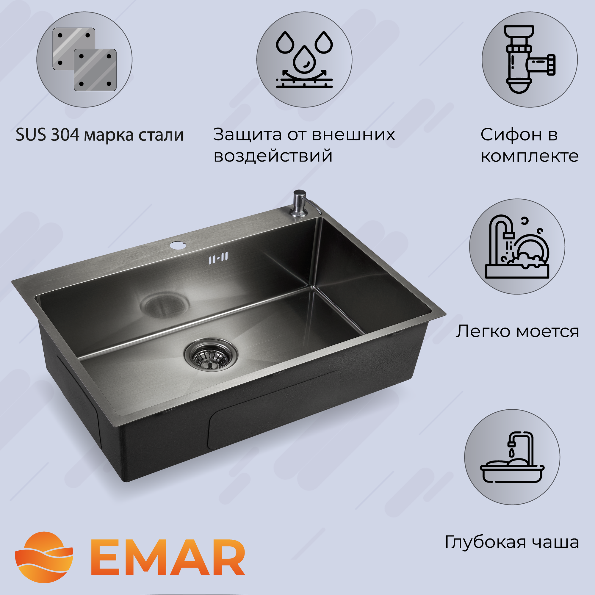 Emar EMB-130 PVD Nano Satine, мойка, нержавеющая сталь сатин