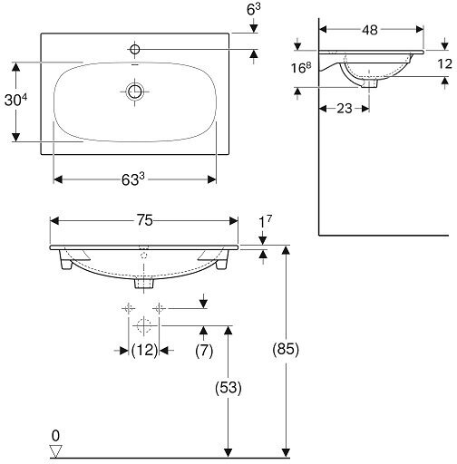Geberit 500.641.01.2 Acanto Встраиваемая раковина Slim 75х48 см, белая