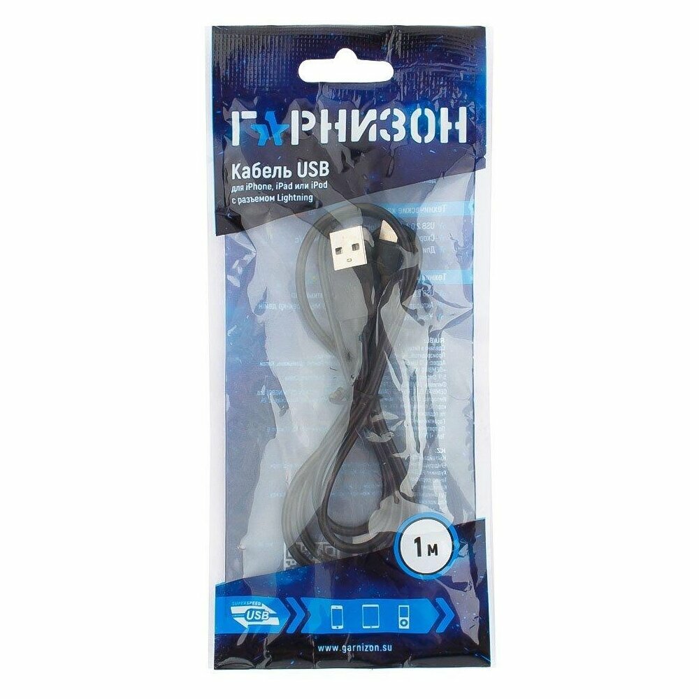 Гарнизон Кабель USB Am - Lightning Гарнизон GCC-USB2-AP2-1M, чёрный - 1 метр