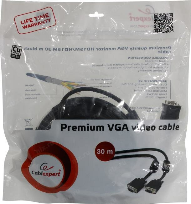 СохранитьКабель VGA Premium Cablexpert, 15M/15M, 30 метров, черный, двойное экранирование, ферритовые кольца интересное: