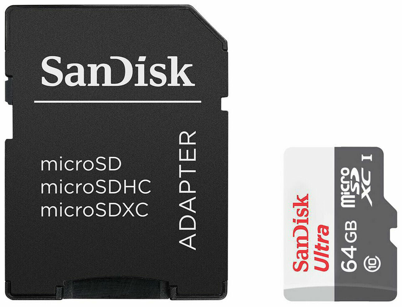 Карта памяти 64Gb MicroSD SanDisk Ultra + SD адаптер (SDSQUNR-064G-GN3MA)