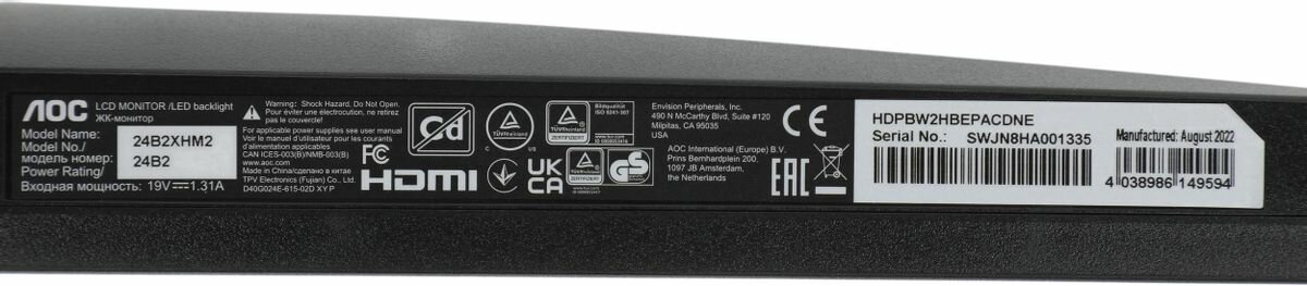 Монитор AOC 24B2XHM2 .