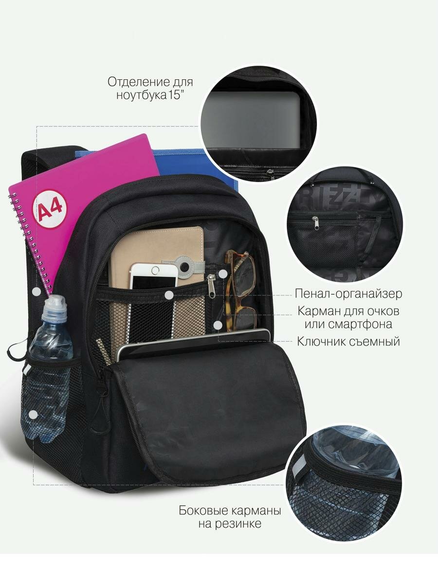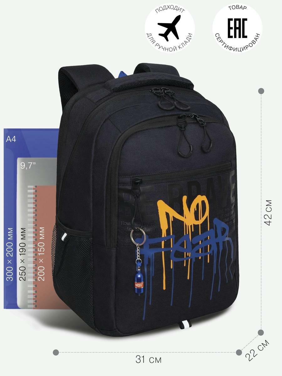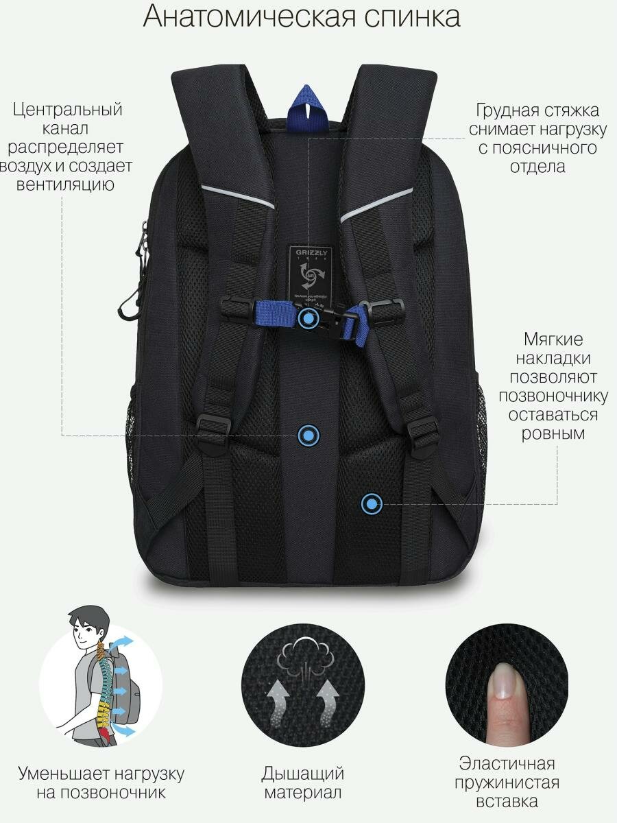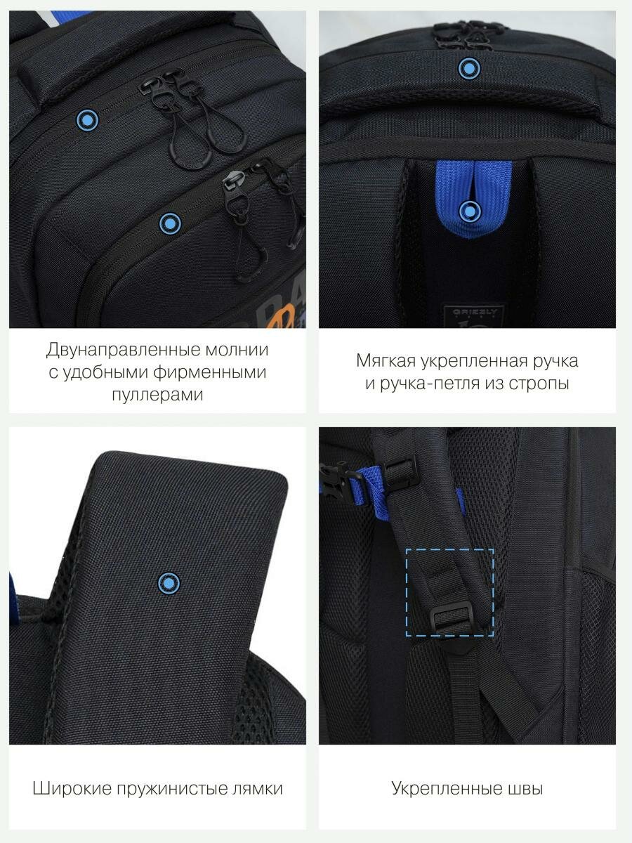 СохранитьШкольный рюкзак GRIZZLY RU-332-2 черный-синий-оранжевый, 31х42х22 интересное: