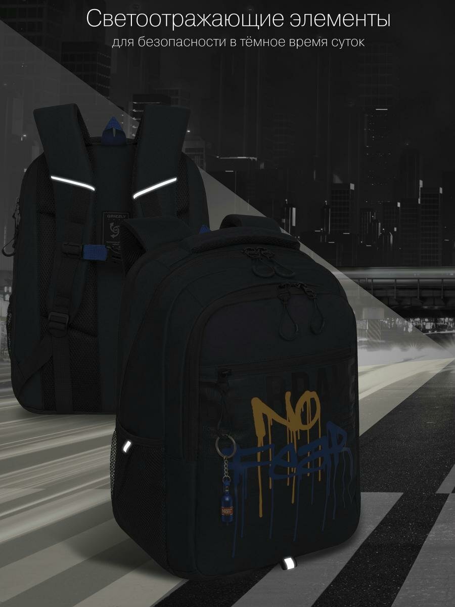 Рюкзак GRIZZLY школьный, анатомический, спинка, 2 отделения, для мальчика, BREAK RULES, 47*32*17