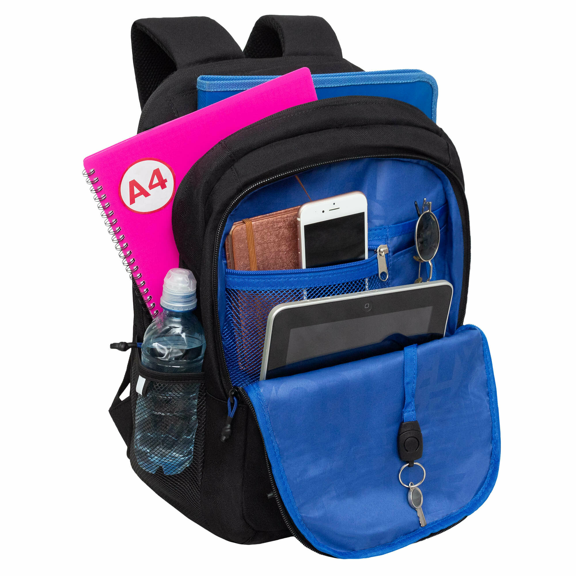 Школьный рюкзак GRIZZLY RU-332-2 черный-синий-оранжевый, 31х42х22