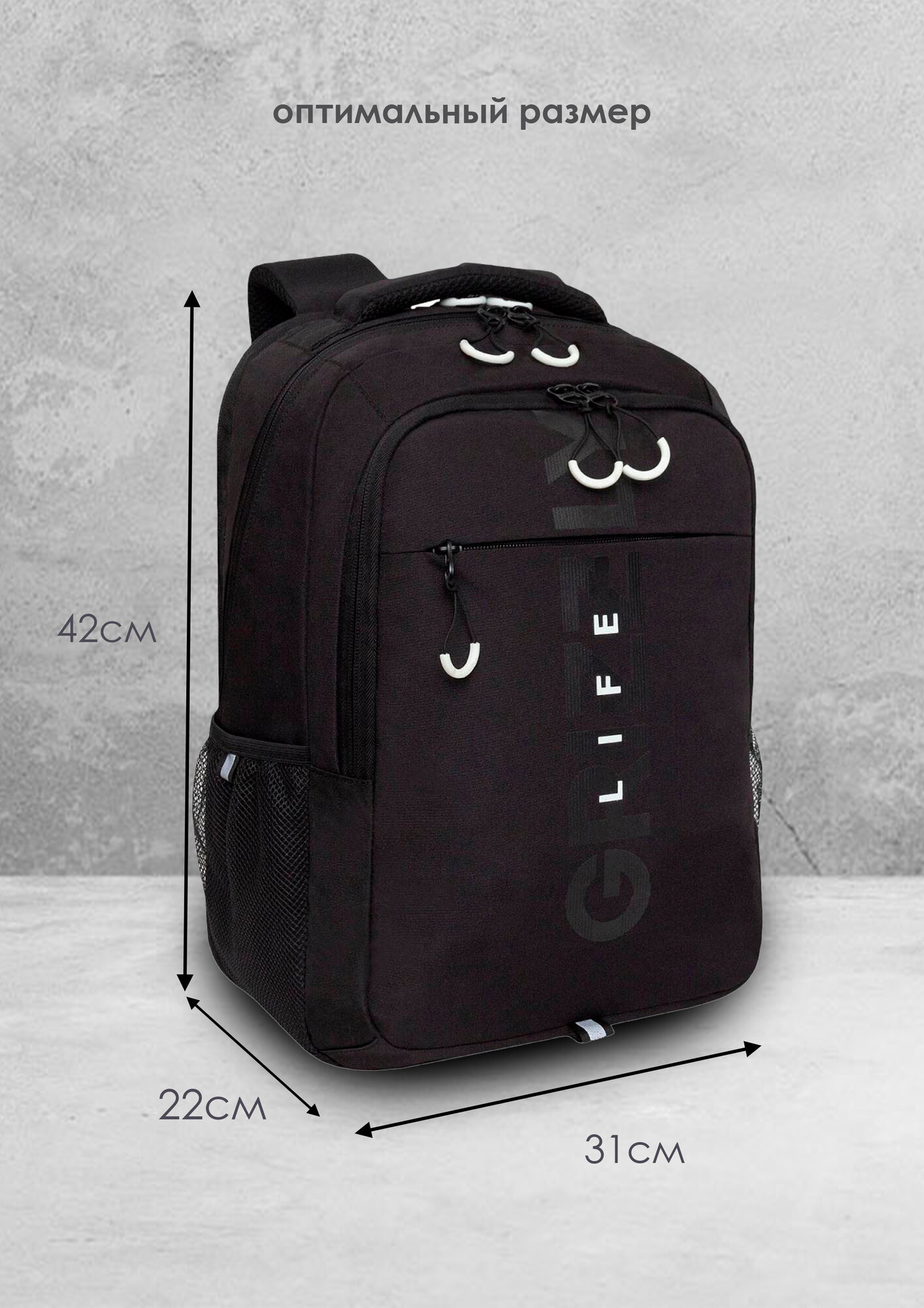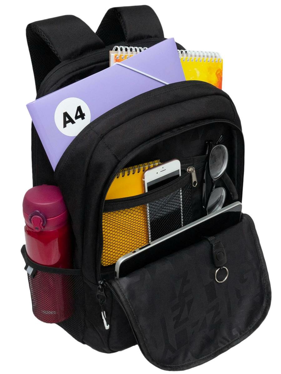 Рюкзак молодёжный 42 х 31 х 22 см, Grizzly, эргономичная спинка, отделение для ноутбука, чёрный