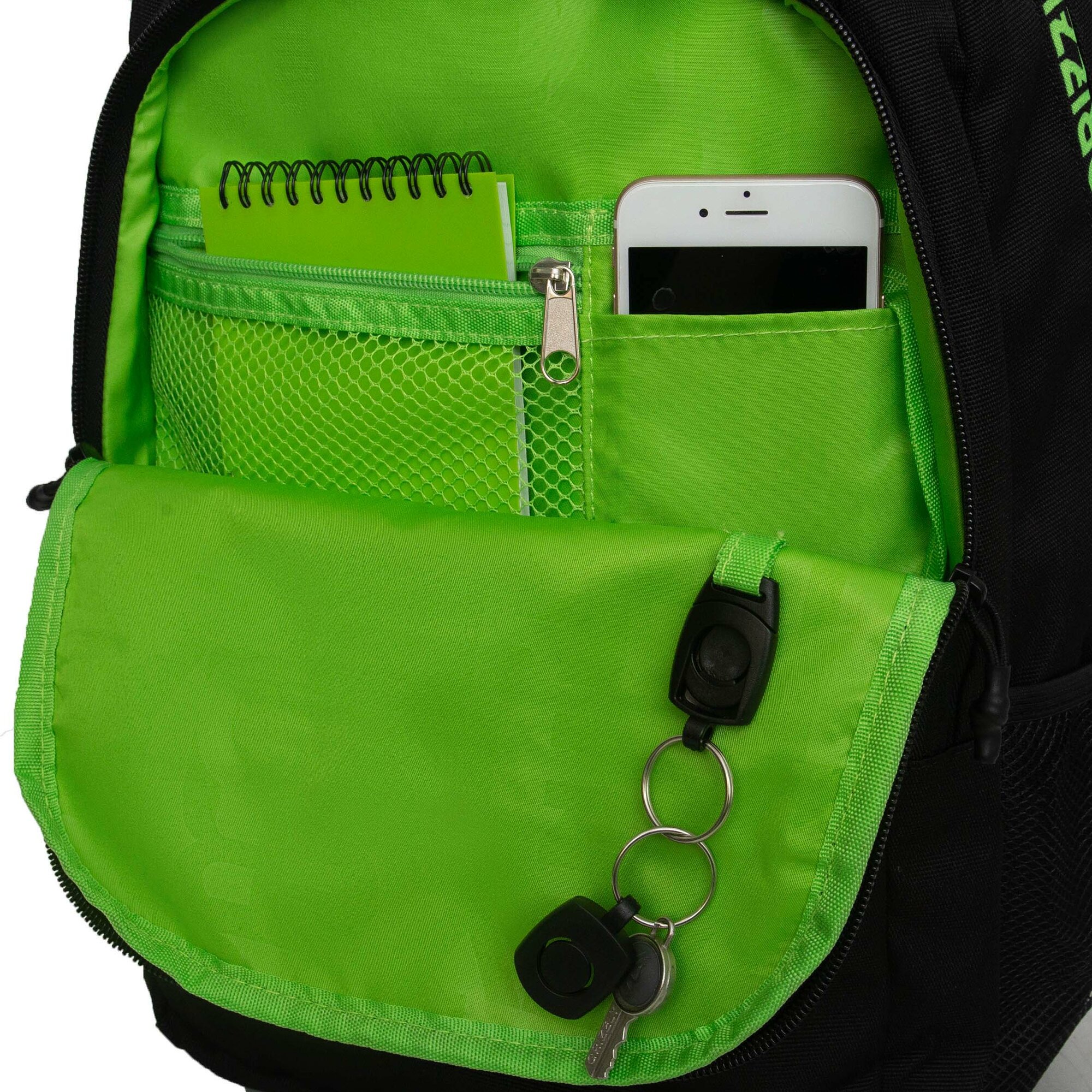 Рюкзак для мальчиков (Grizzly) арт RU-432-3/2 черный-салатовый 31х42х22 см