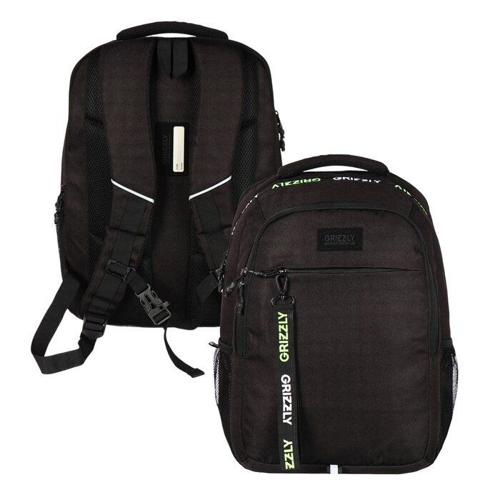 Рюкзак молодёжный 42 х 31 х 22 см, Grizzly, эргономичная спинка, отделение для ноутбука, чёрный