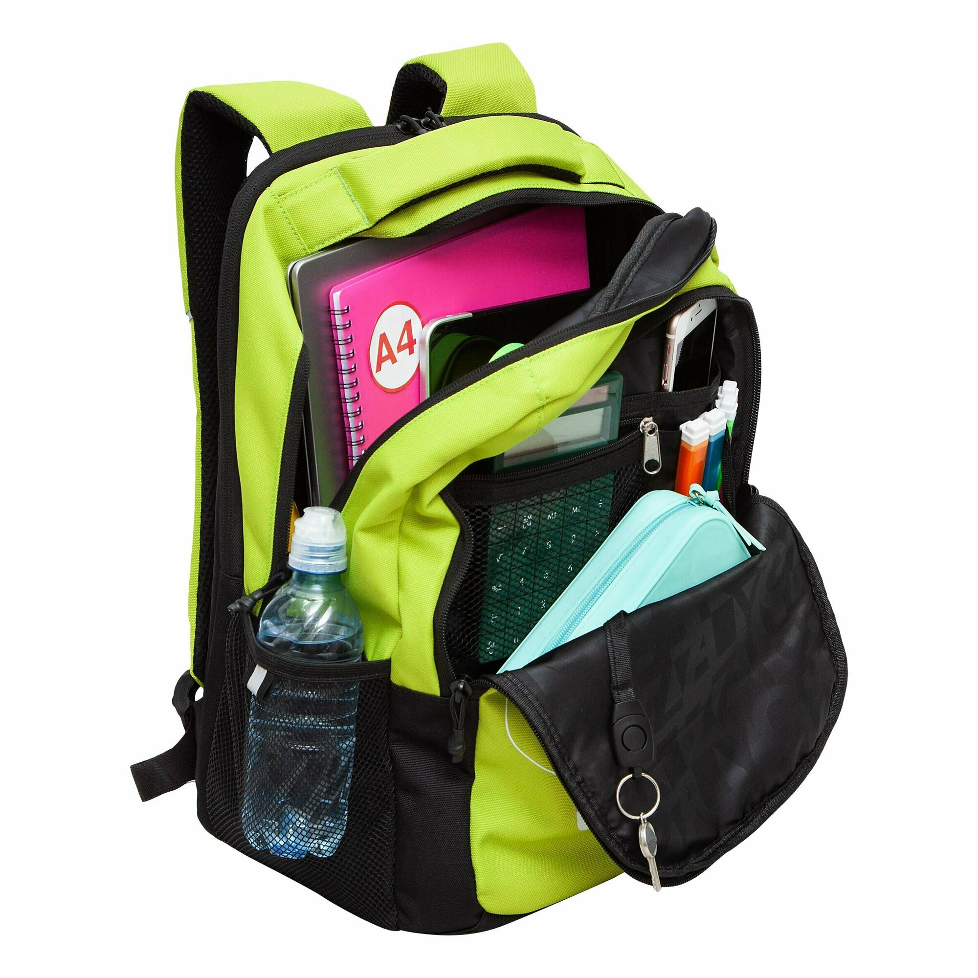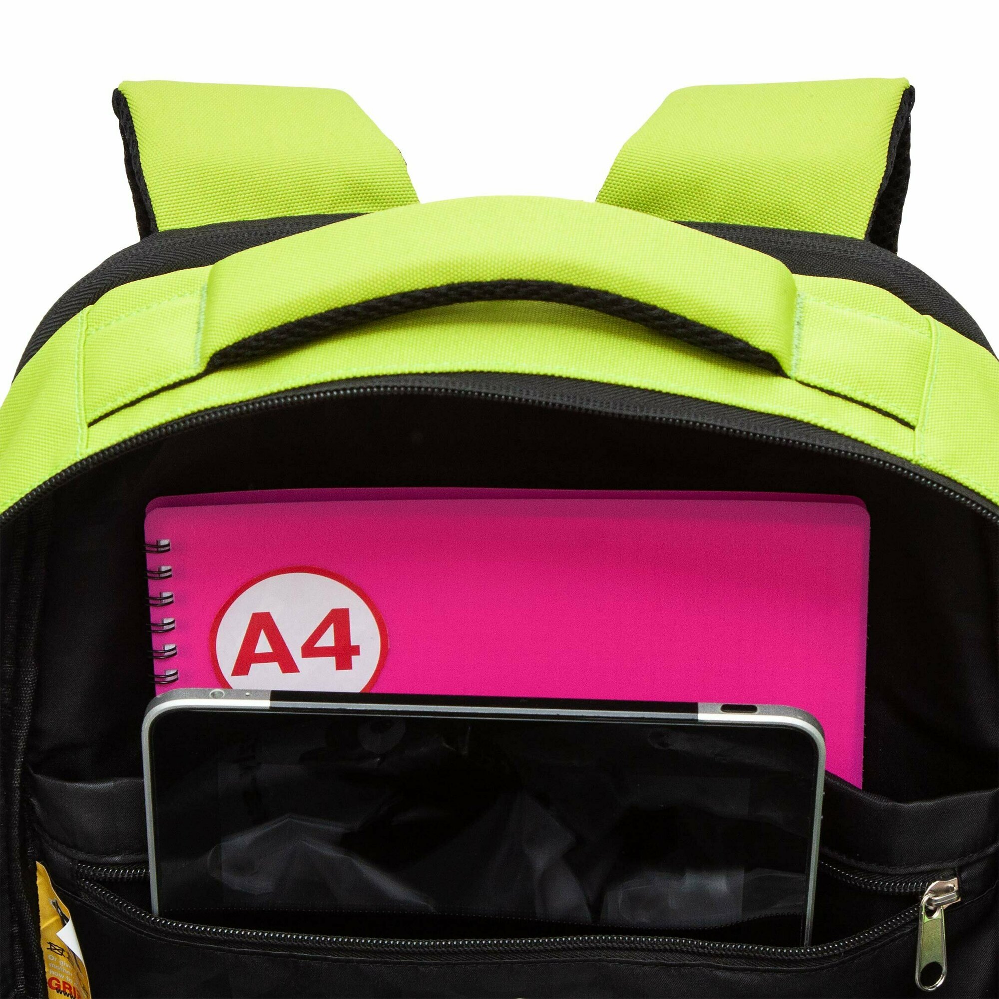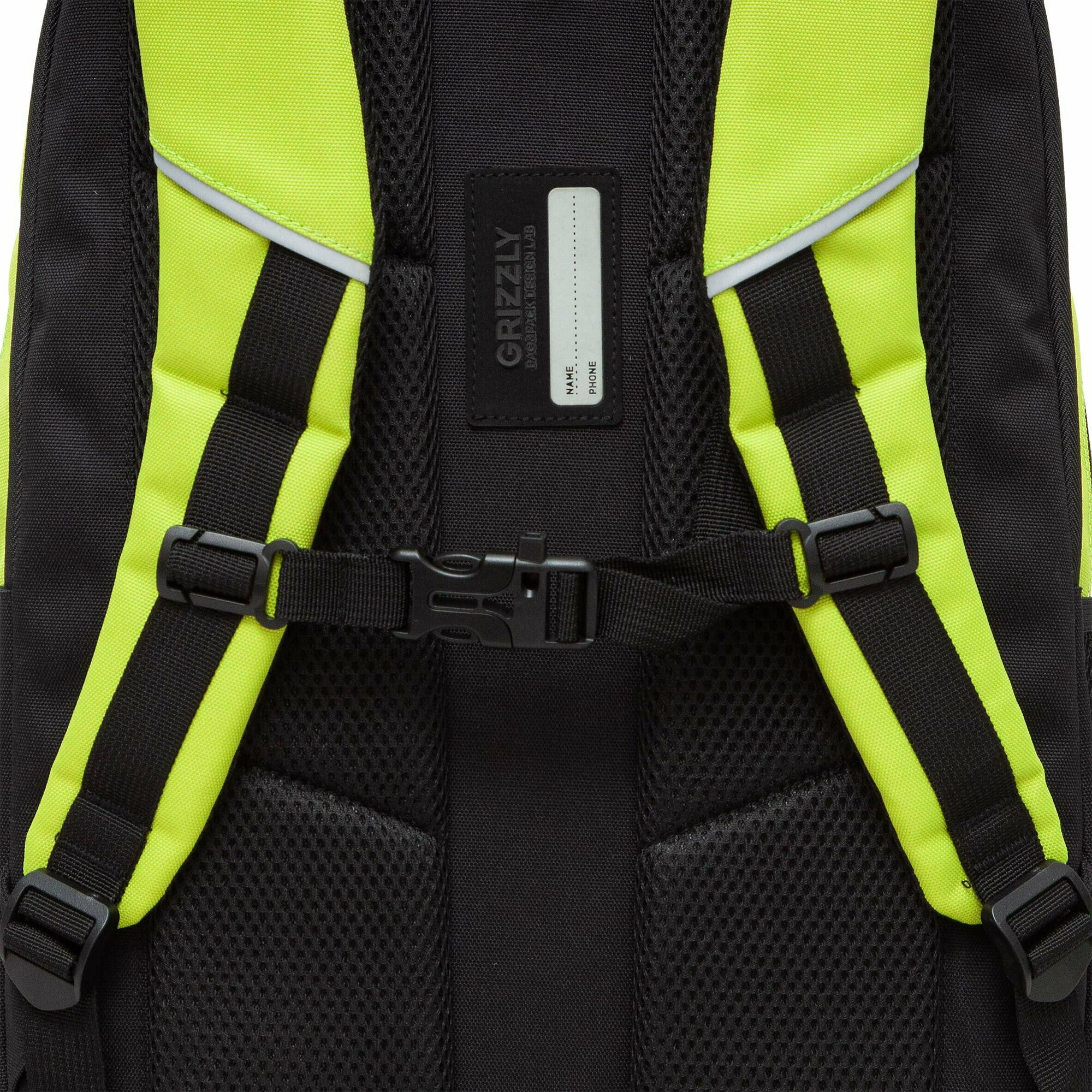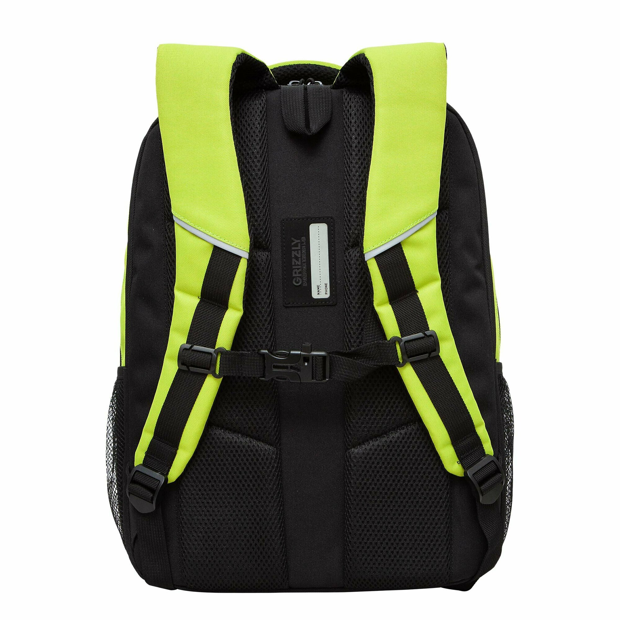 Рюкзак для мальчиков (Grizzly) арт RU-432-3/2 черный-салатовый 31х42х22 см