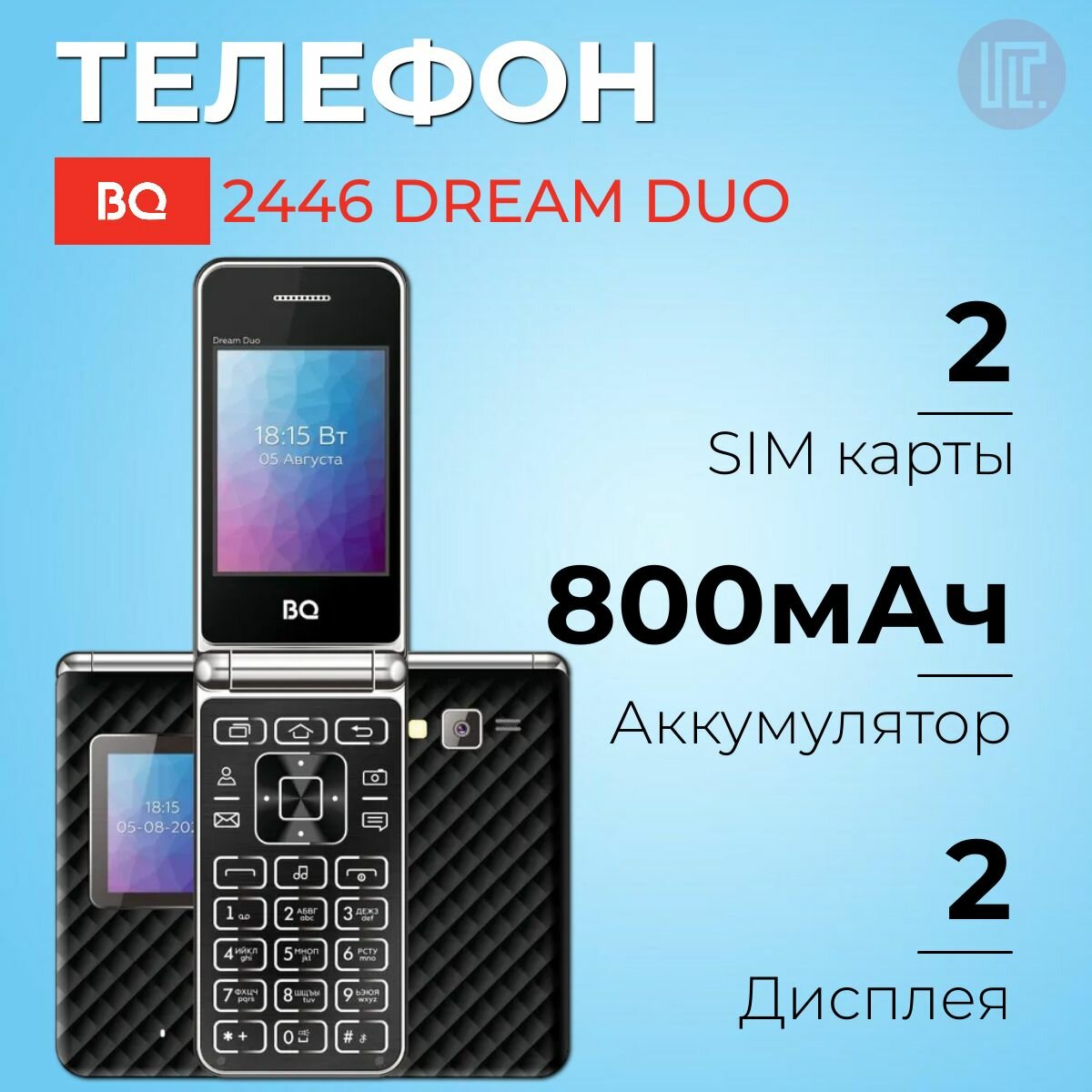 Сотовый телефон BQ BQ-2446 Dream Duo Black (2sim/2.4"/320*240/32Mb/microSD/0.08Мп/Bt/800мАч/раскладушка)