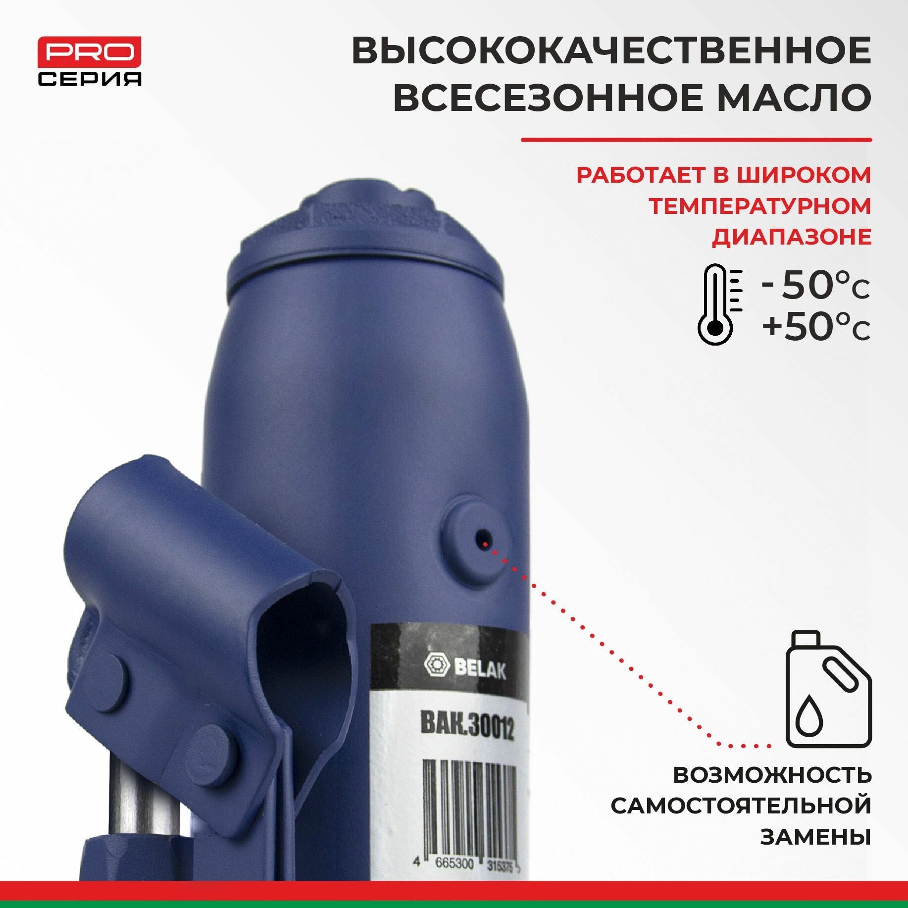Белавтокомплект BAK.30012 Домкрат 4 тонны PREMIUM "BELAK" (TUV, 2 клапана, 194мм-372мм)