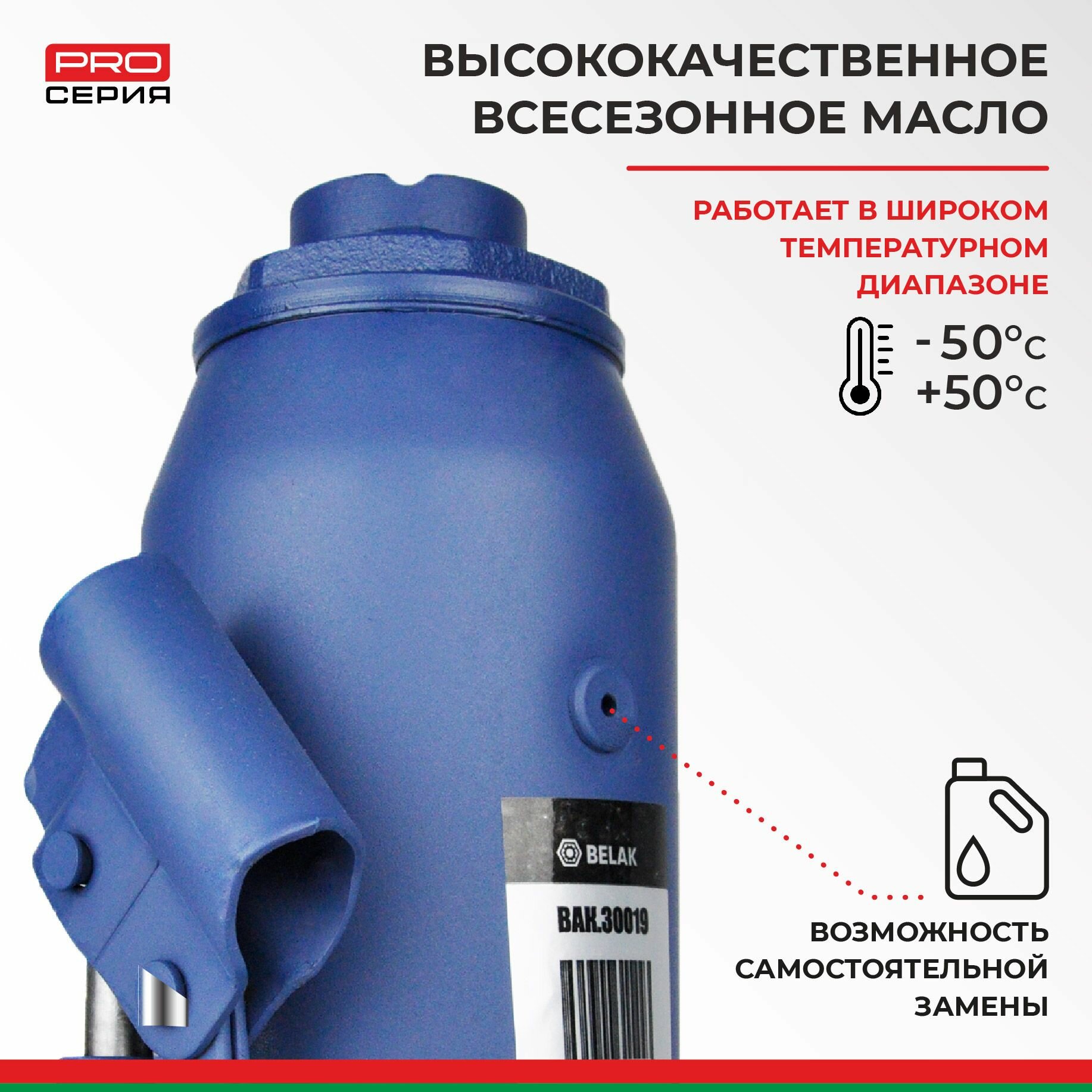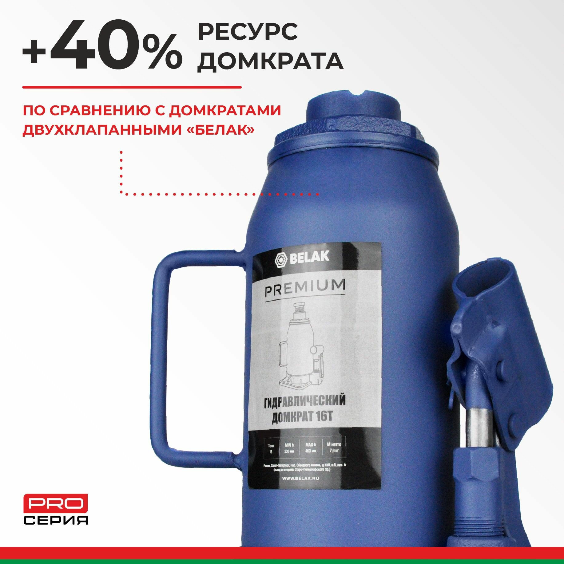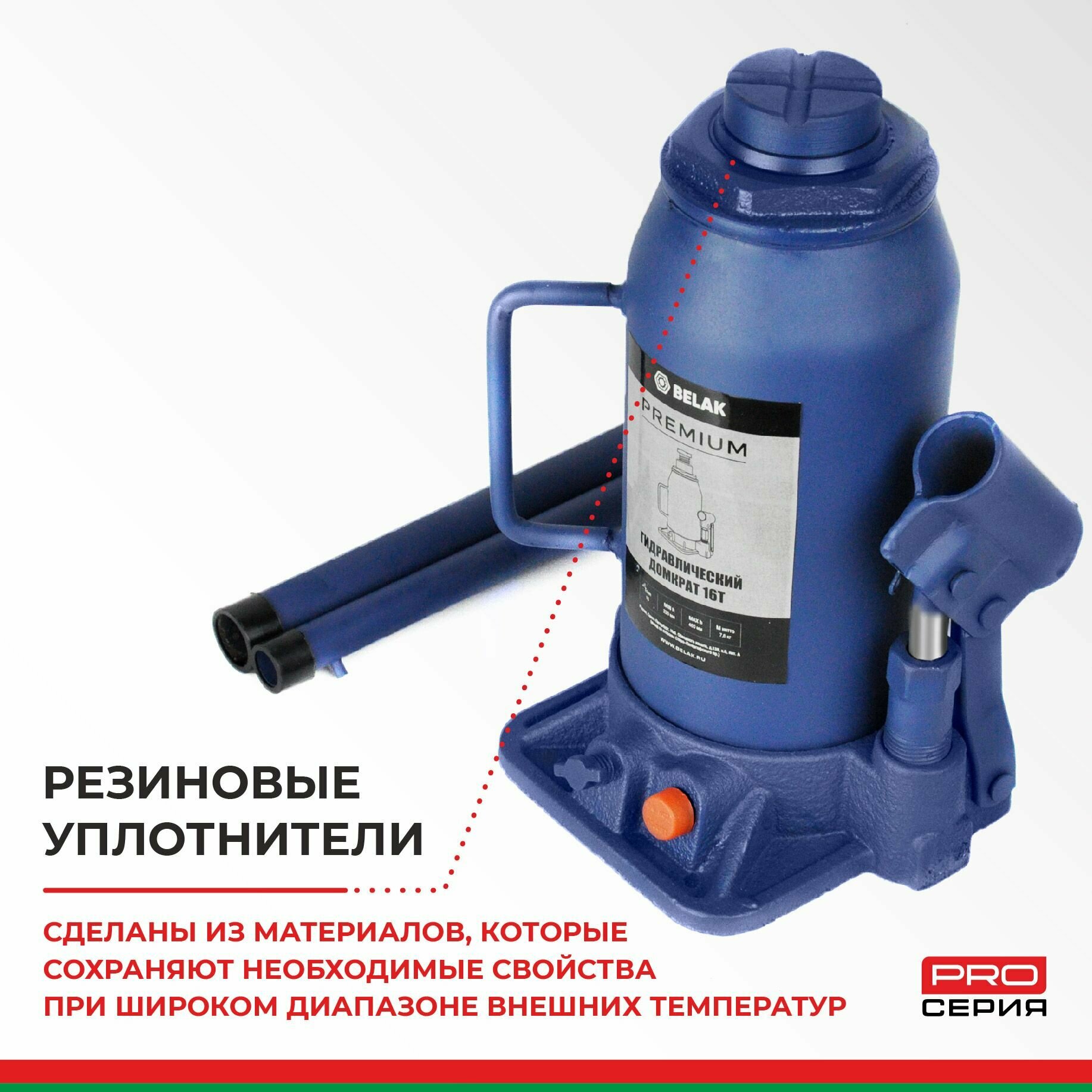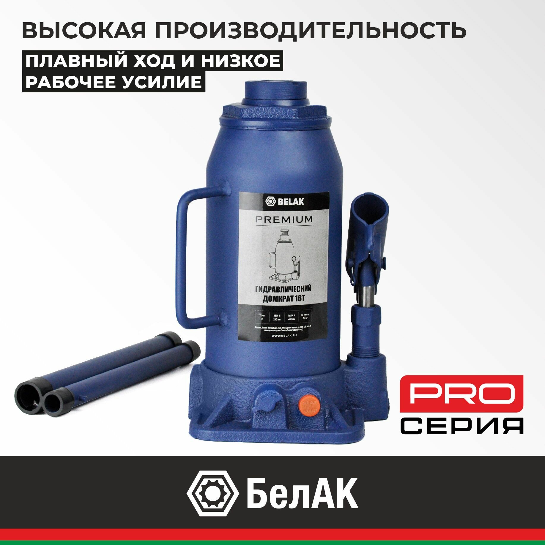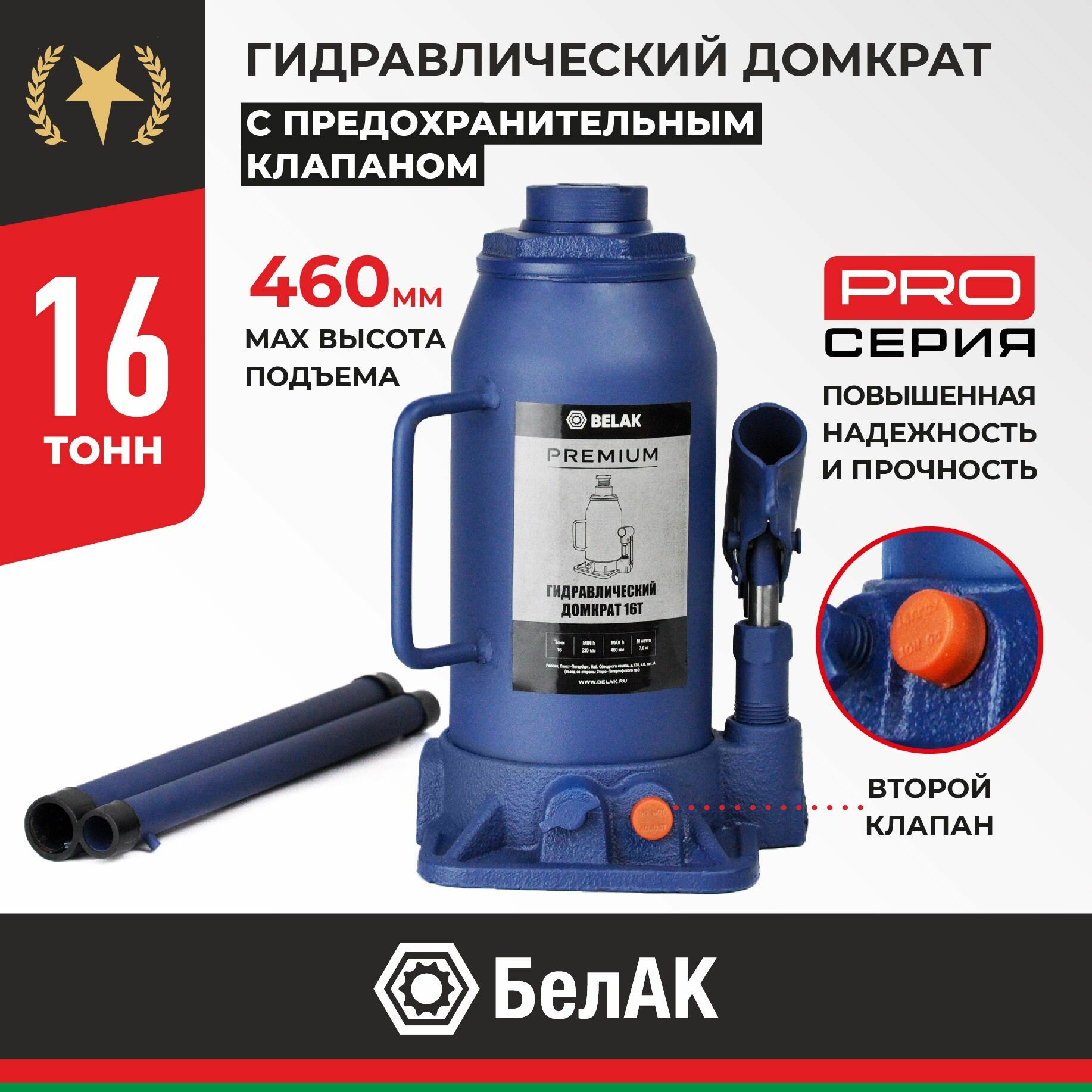 Белавтокомплект BAK.30019 Домкрат 16 тонн PREMIUM "BELAK" (TUV, 2 клапана, 230мм-460мм) 1шт