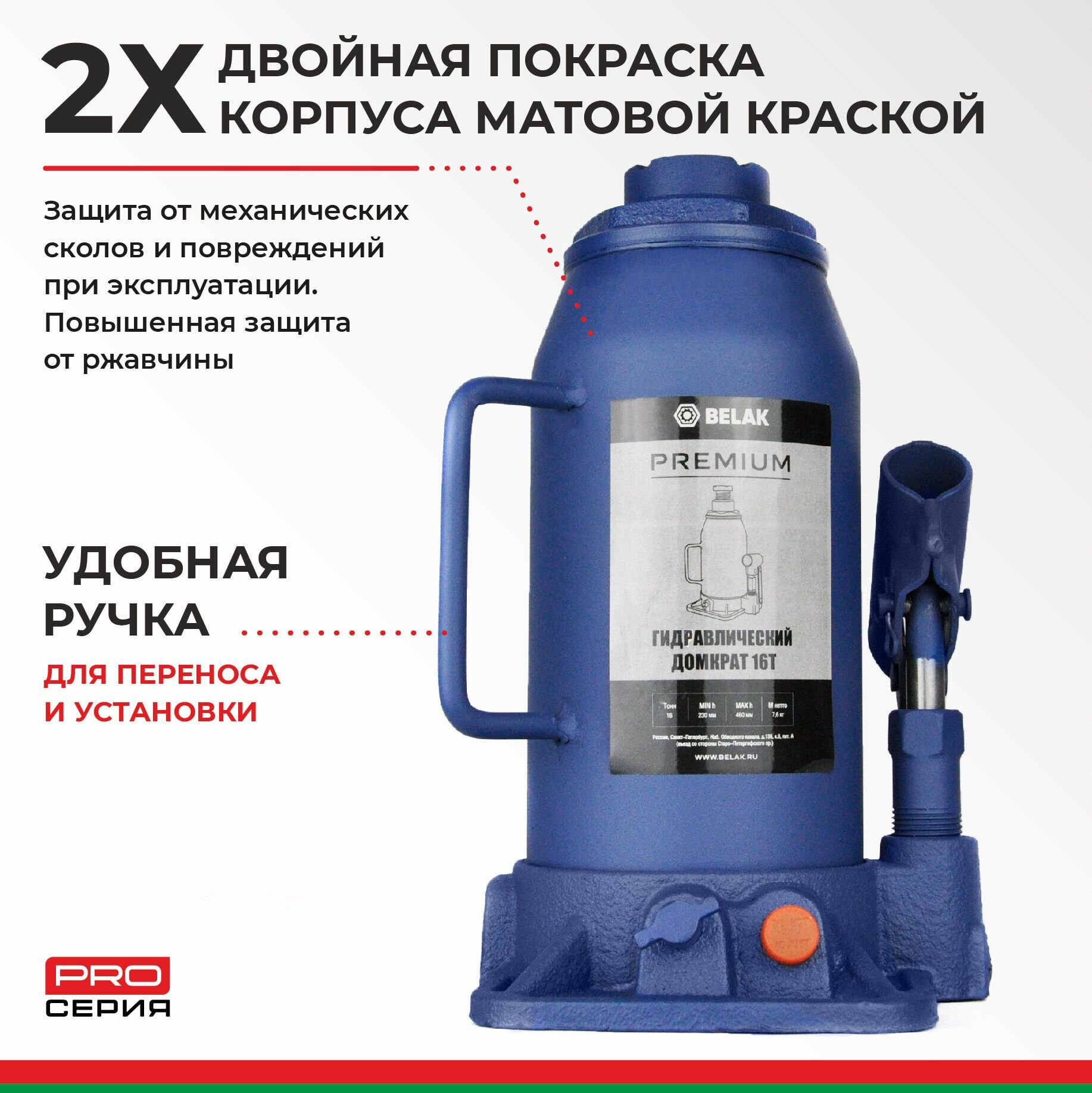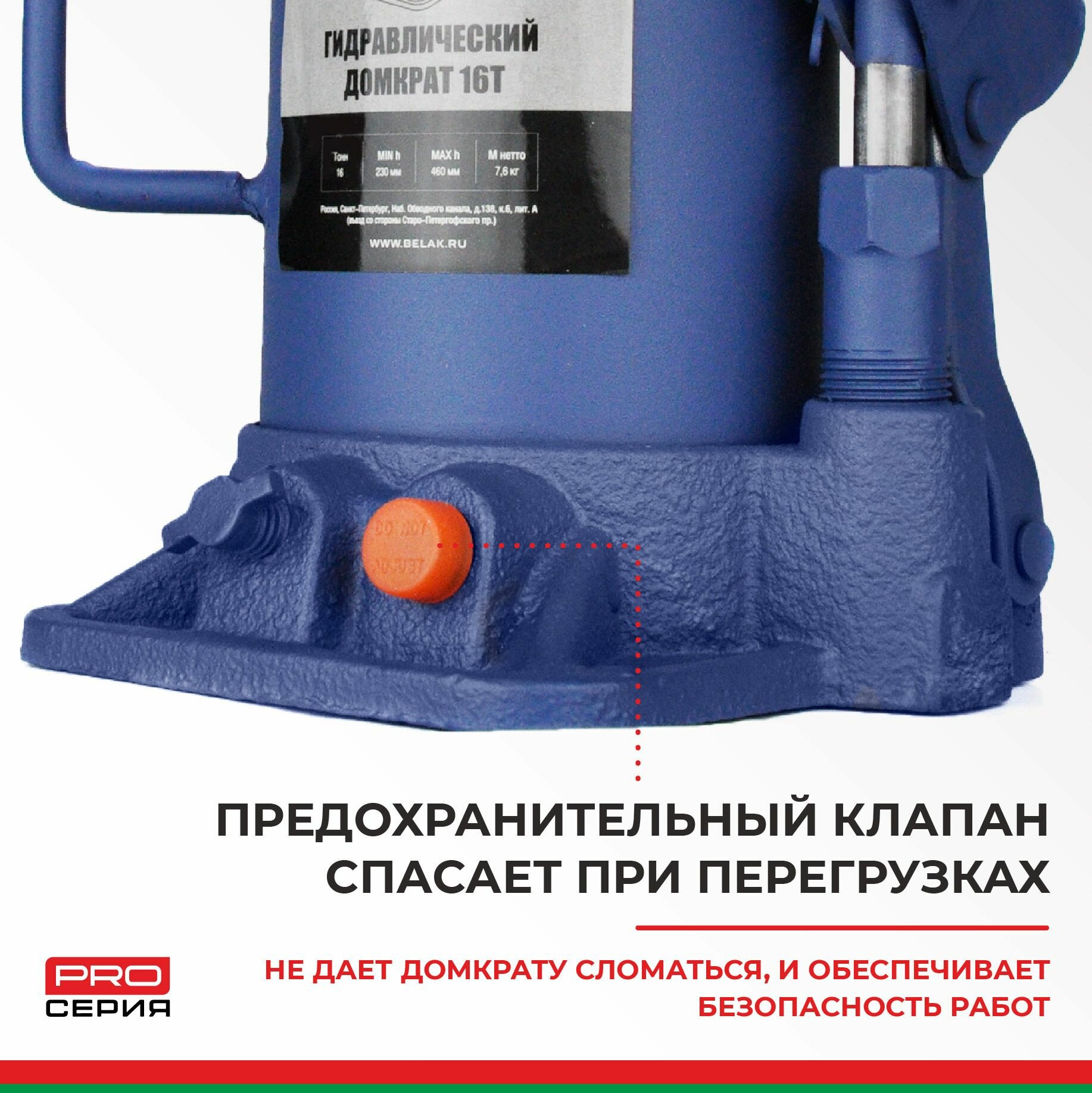 Белавтокомплект BAK.30019 Домкрат 16 тонн PREMIUM "BELAK" (TUV, 2 клапана, 230мм-460мм)