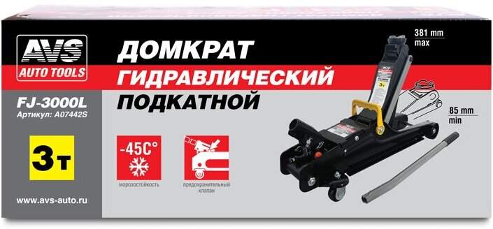 Домкрат автомобильный AVS FJ-3000L подкатной, гидравлический 85-381мм, 3т - A07442S