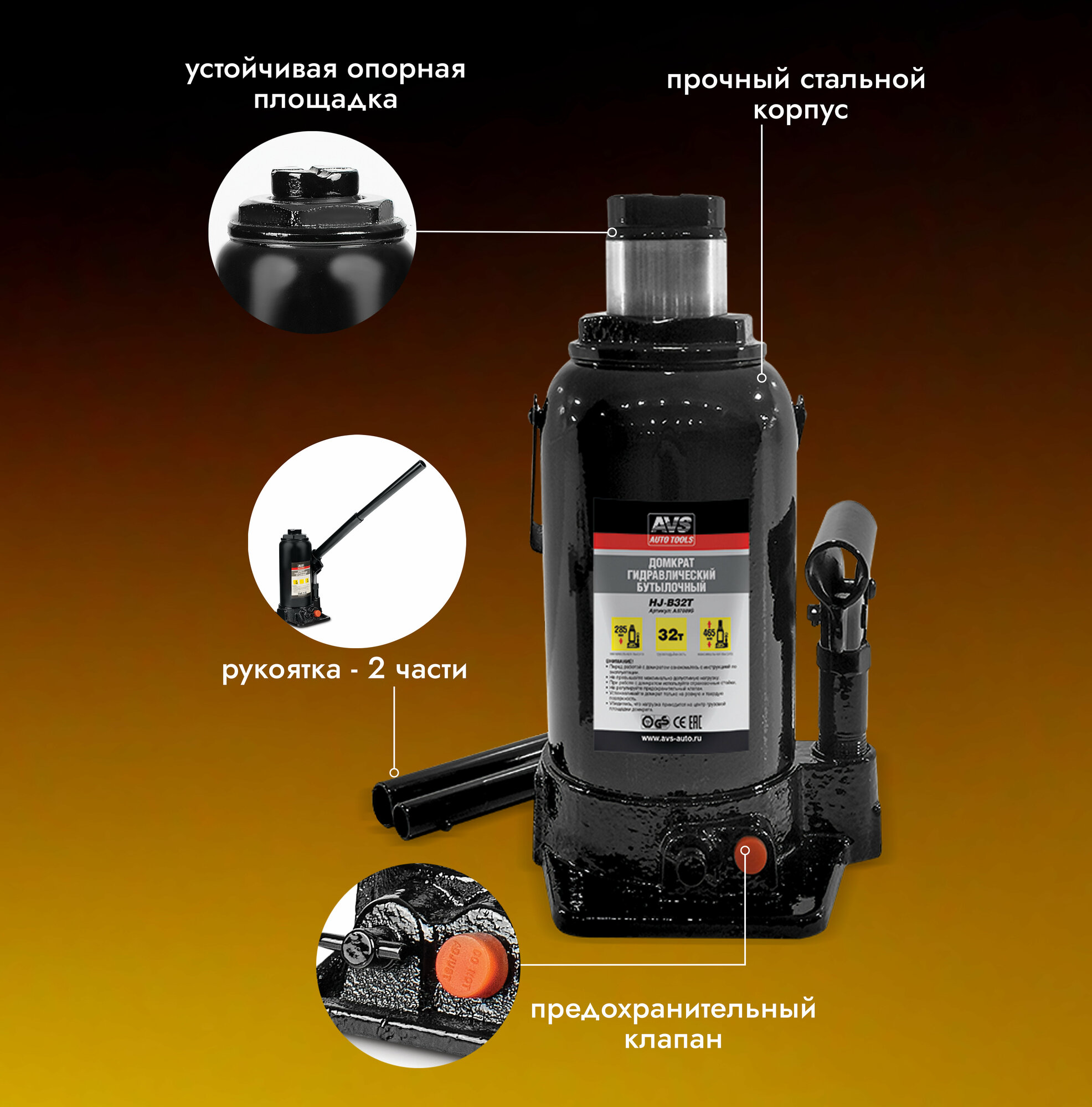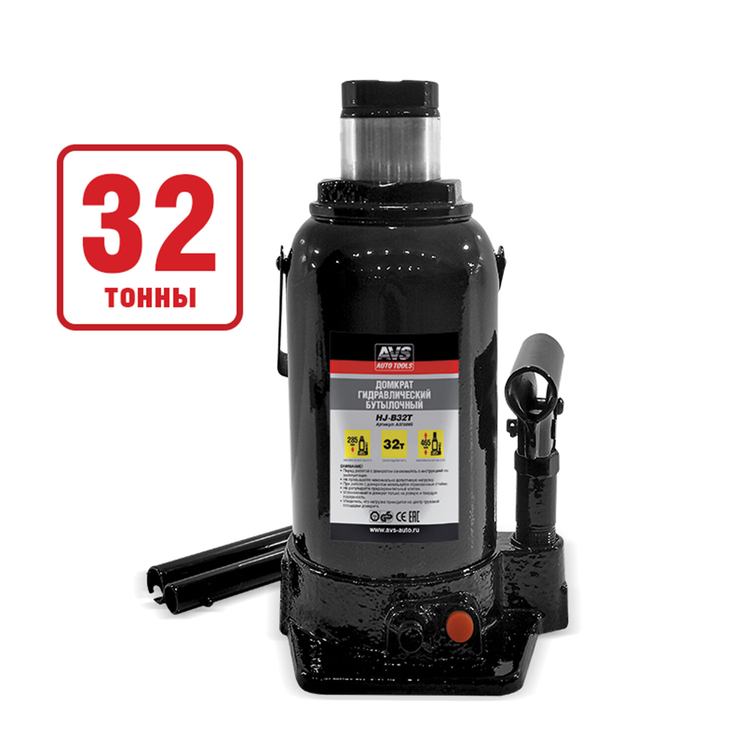 Домкрат автомобильный гидравлический (бутылочный) AVS HJ-B32T, 32 тонны, A07089S