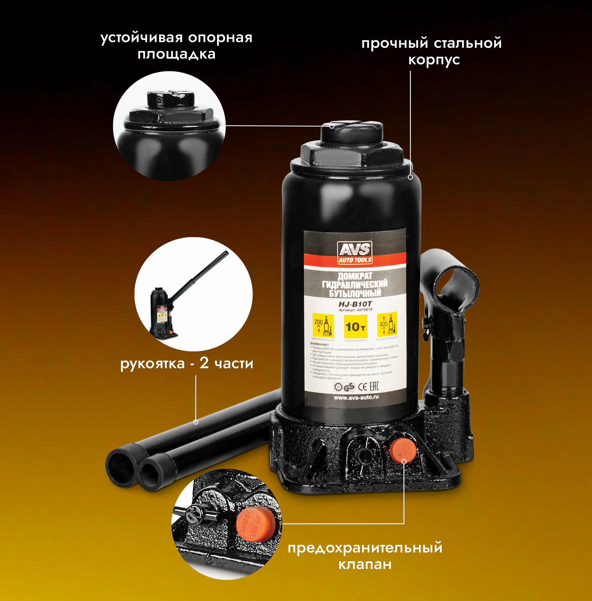 Купить Домкрат Гидравлический Avs Hj-B10t, 10Т, 200-405Мм AVS арт. A07087S