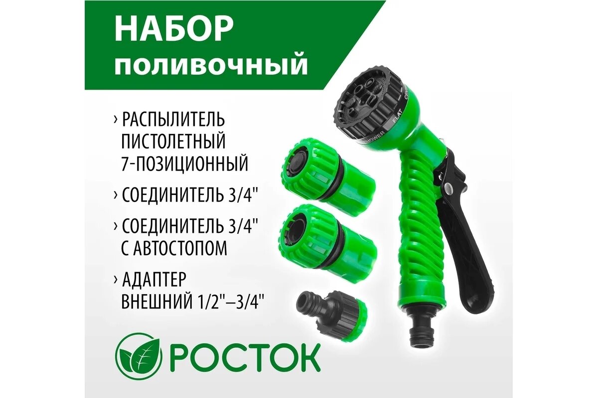 Набор поливочный Росток: Распылитель пистолетный 7 поз., 2 соединителя 3/4", адаптер внешний