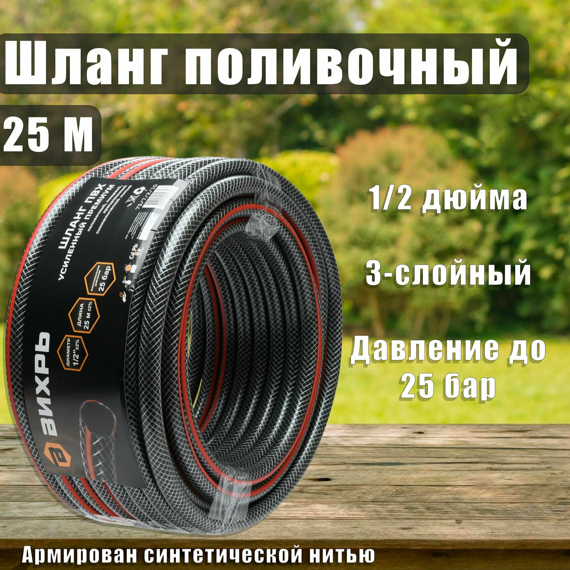 Армированный усиленный поливочный шланг Вихрь премиум, Пвх, пищевой, трехслойный, 1/2", 25 м 73/7/2/ .