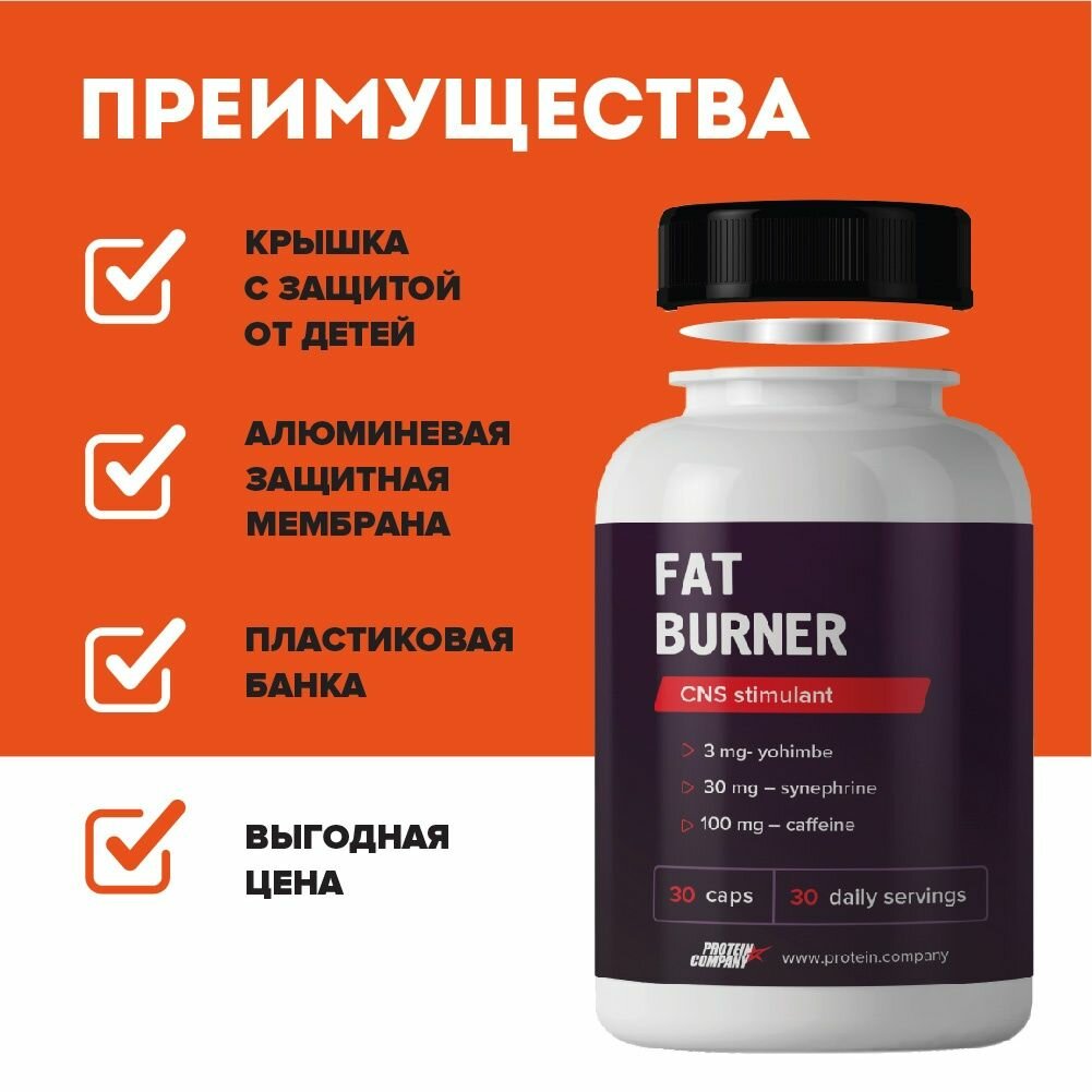 Жиросжигатель PROTEIN.COMPANY комплекс из йохимбе, кофеин, бакопа монье, дмае, холин битартрат, термоген, 30 порций, 60 капсул