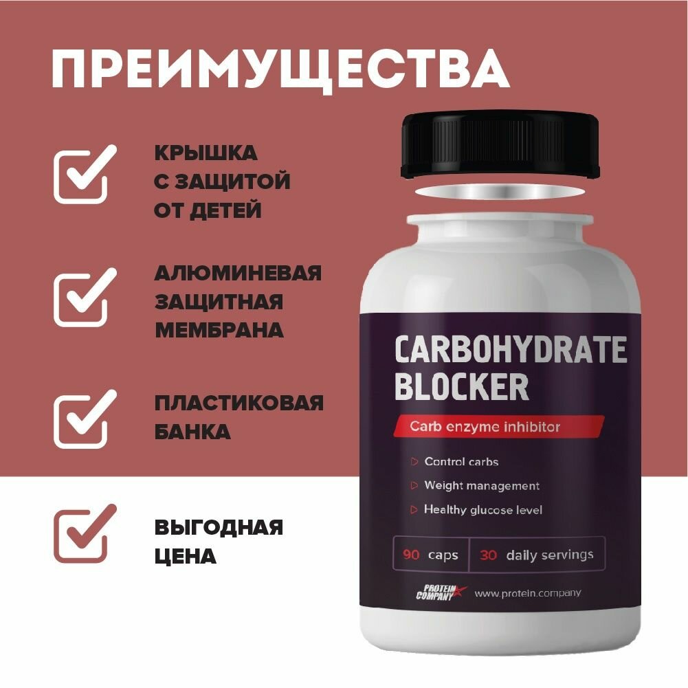 Carbohydrate blocker / PROTEIN.COMPANY / Блокатор углеводов / Капсулы / 30 порций / 90 капсул