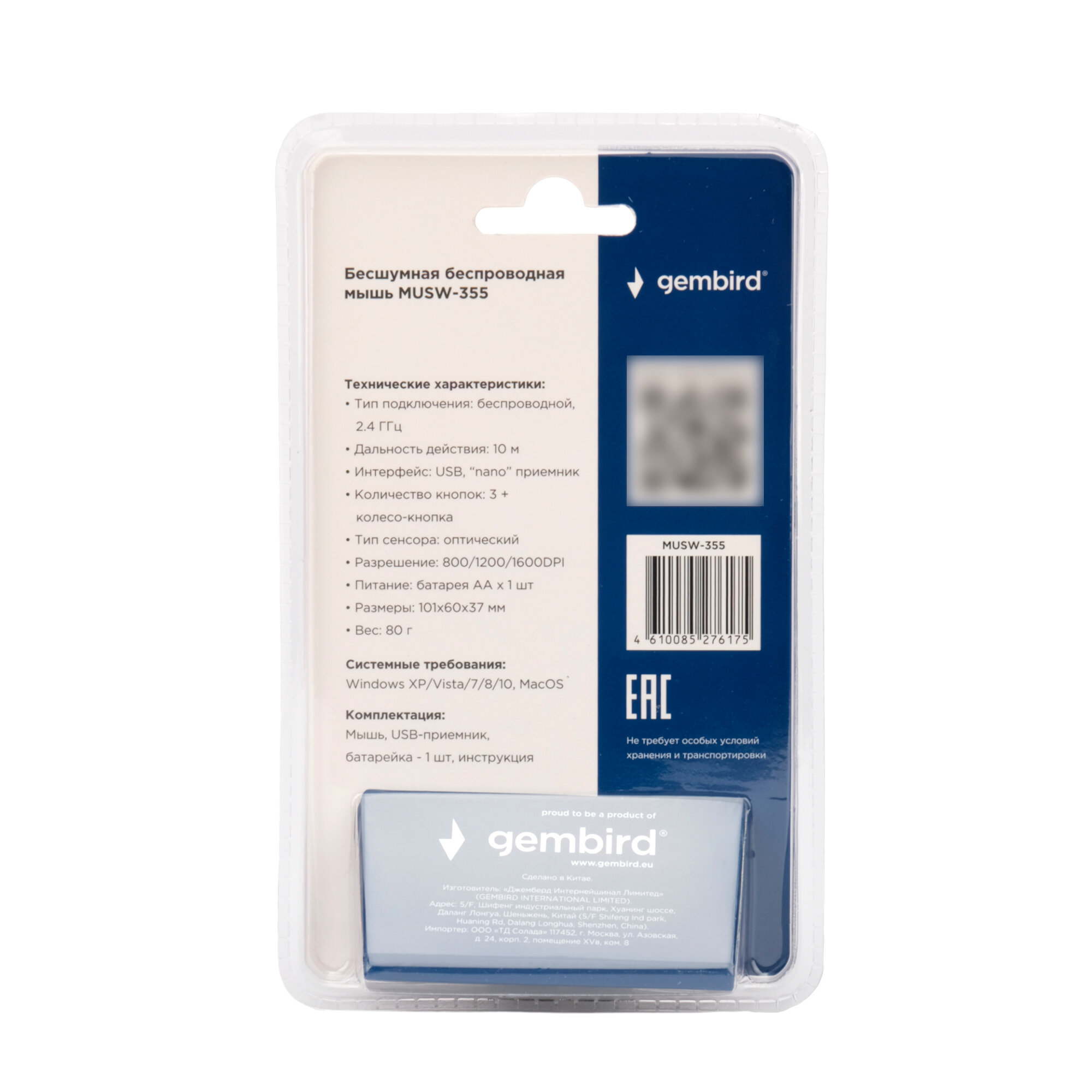 Беспроводная мышь Gembird MUSW-355, черный