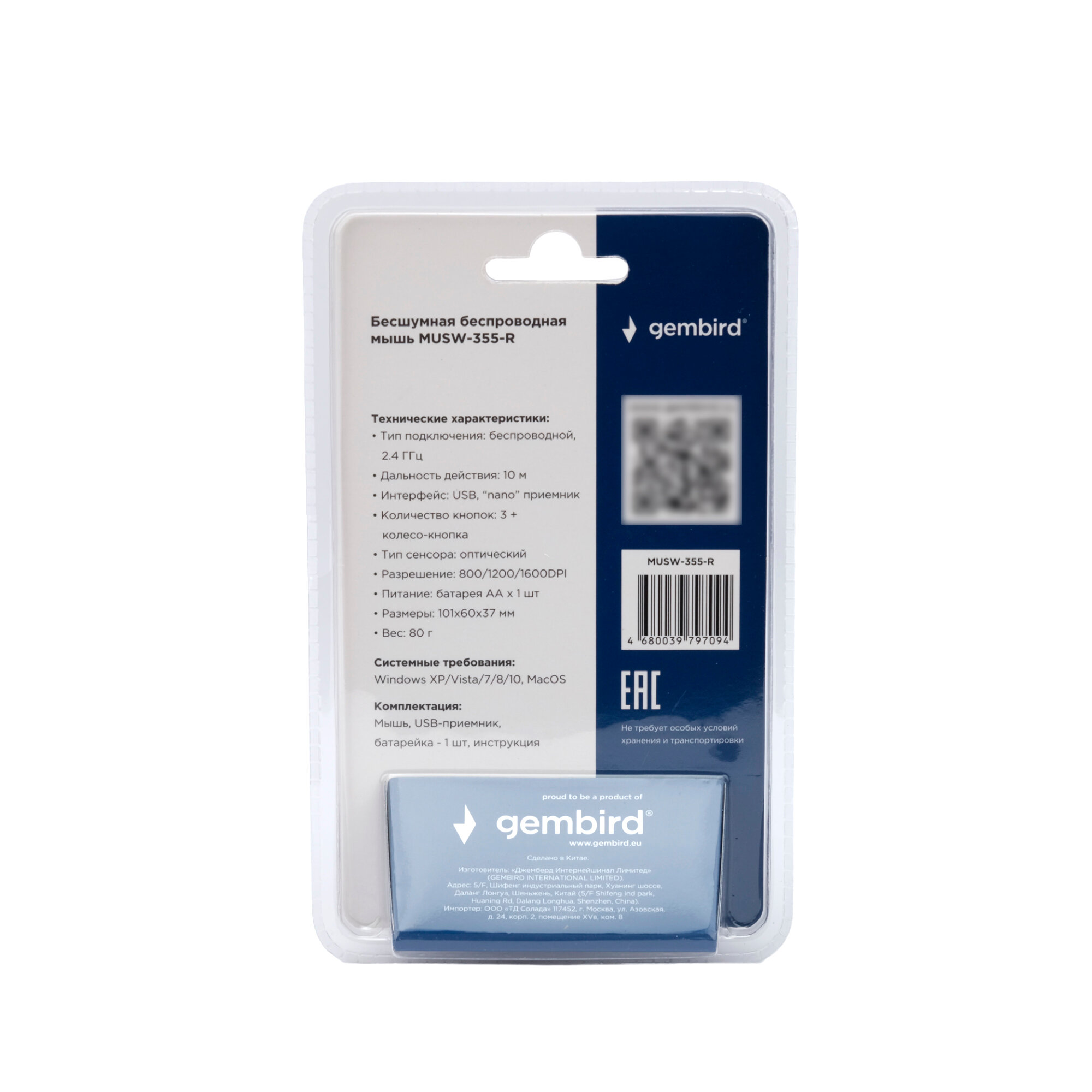 Беспроводная бесшумная мышь Gembird MUSW-355-R